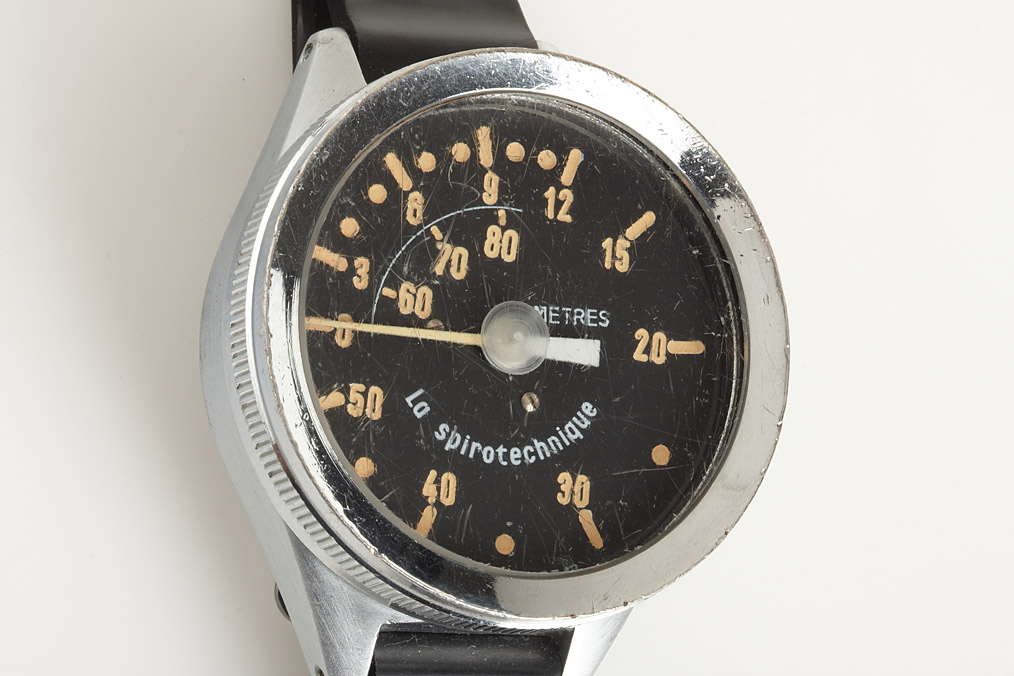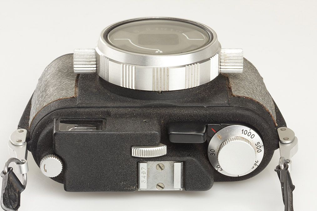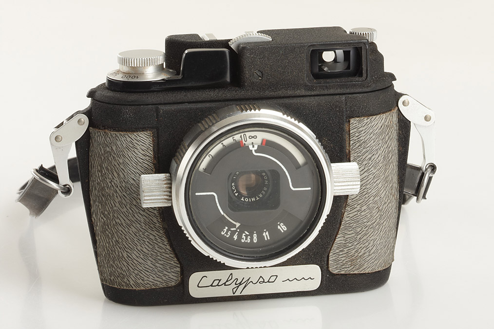 early underwater camera (forerunner of the Nikonos), first type with grey plastic imitation sealskin (1/30-1000 sec.) in fantastic original condition and perfect working order, Som Berthiot 3.5/35mm, strap, original gaskets, instruction book, original makers box - rare in such good condition, with original La Spirotechnique bathometer