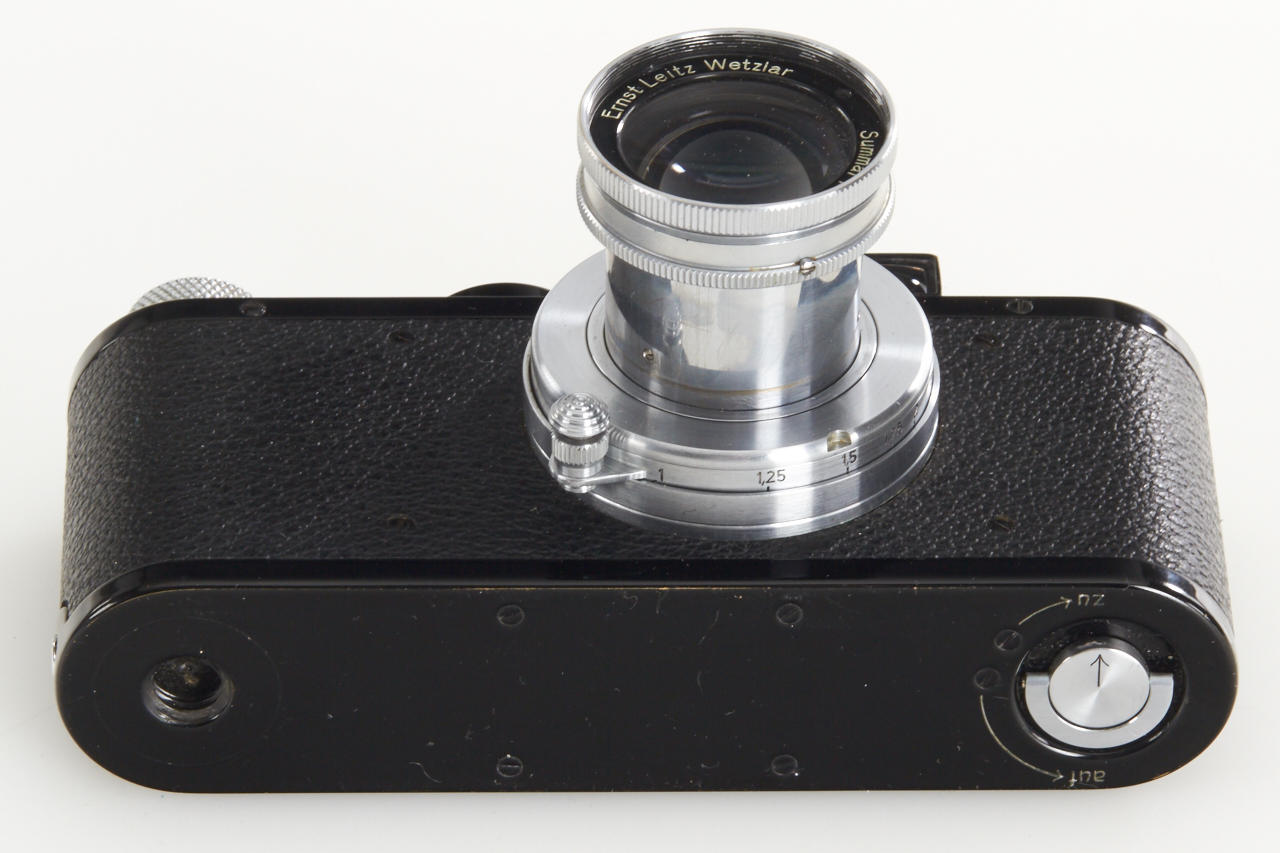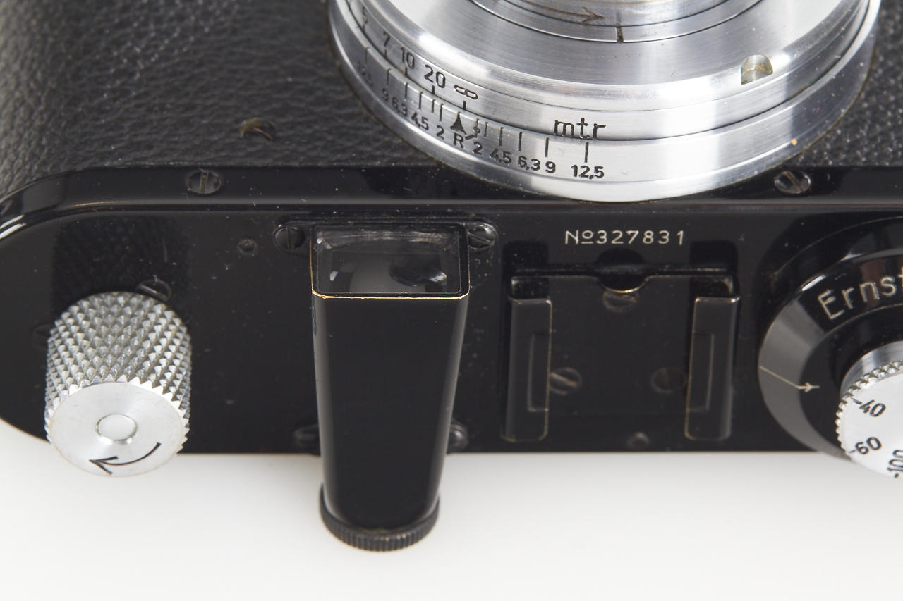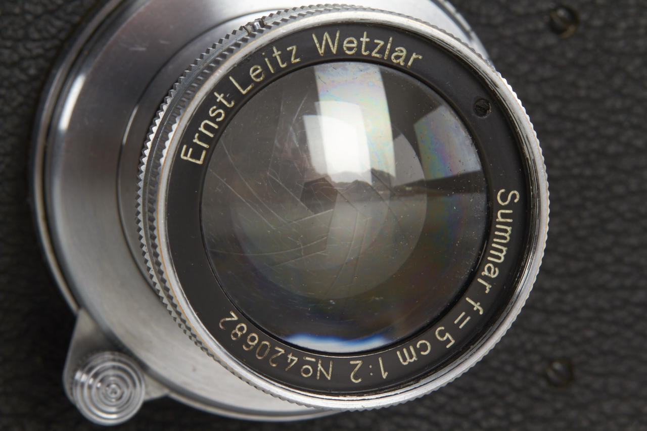 very late black Standard in near mint condition, with matching chrome collapsible Summar 2/5cm no.420682, black bakelite cap, AUFSU finder in leather case