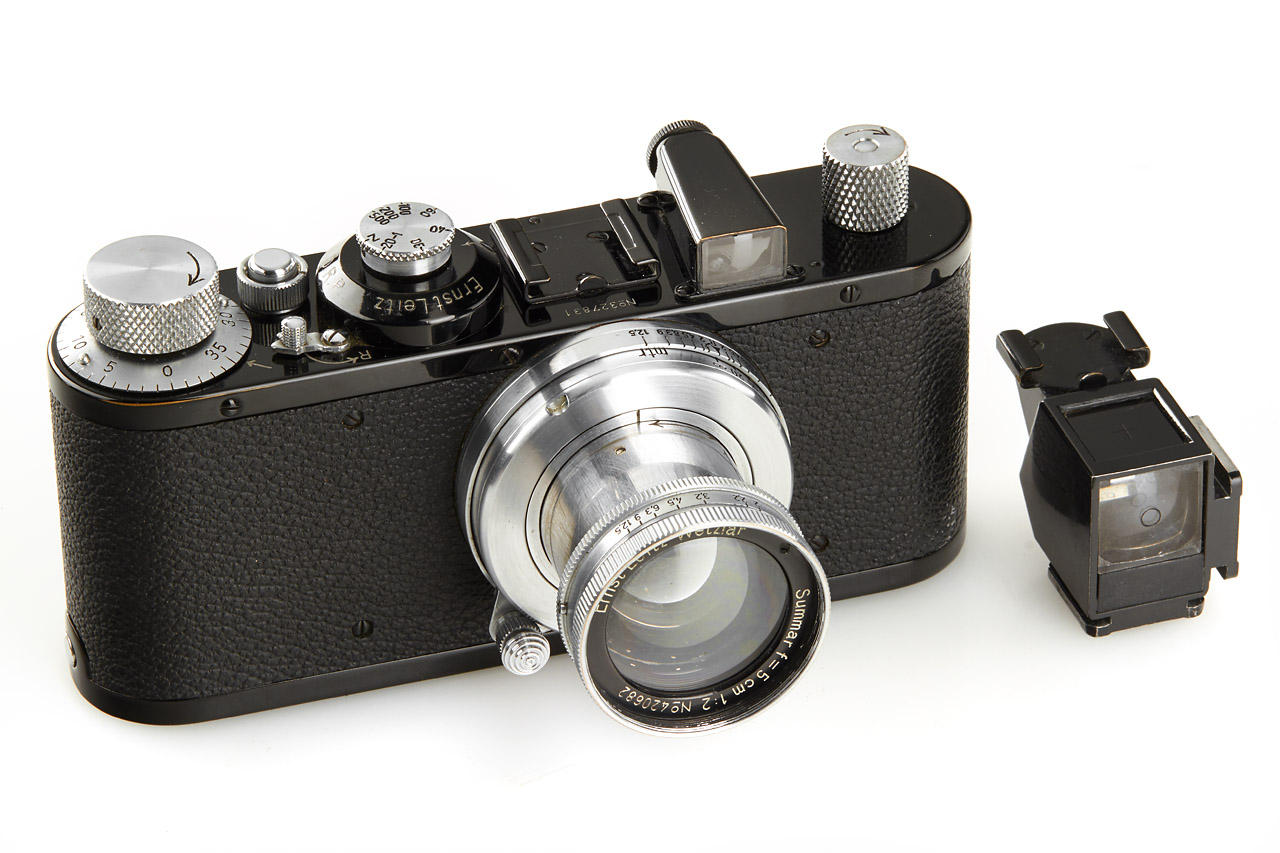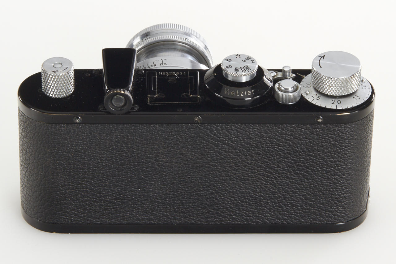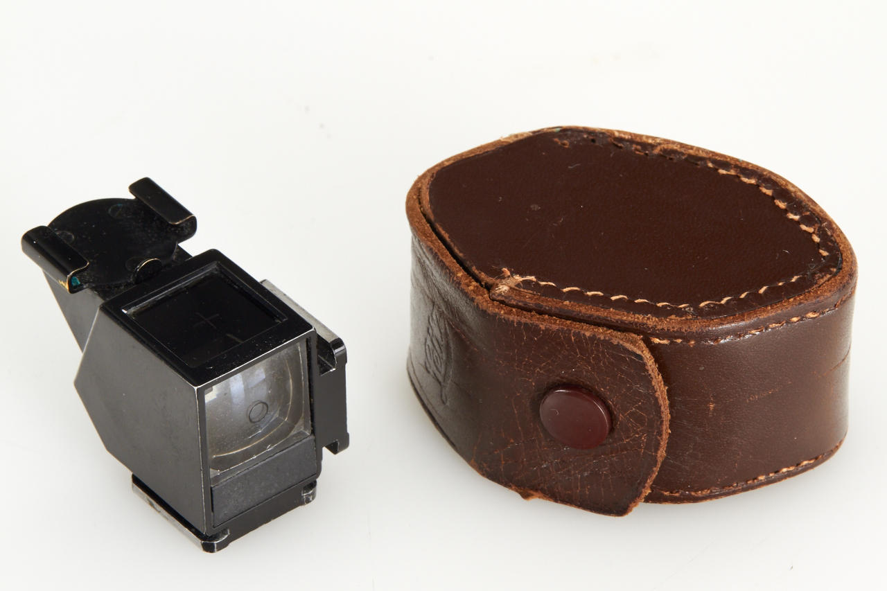 very late black Standard in near mint condition, with matching chrome collapsible Summar 2/5cm no.420682, black bakelite cap, AUFSU finder in leather case