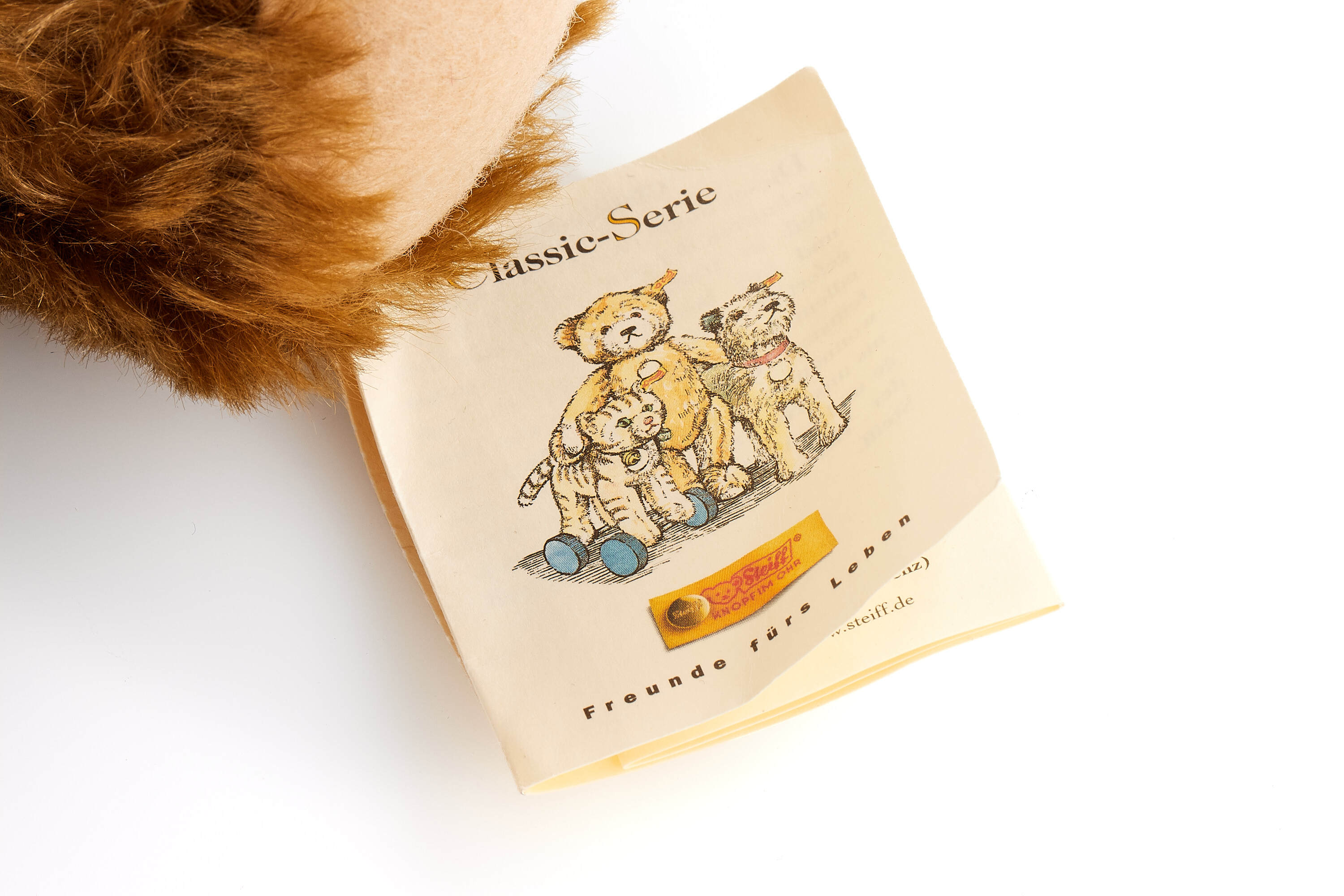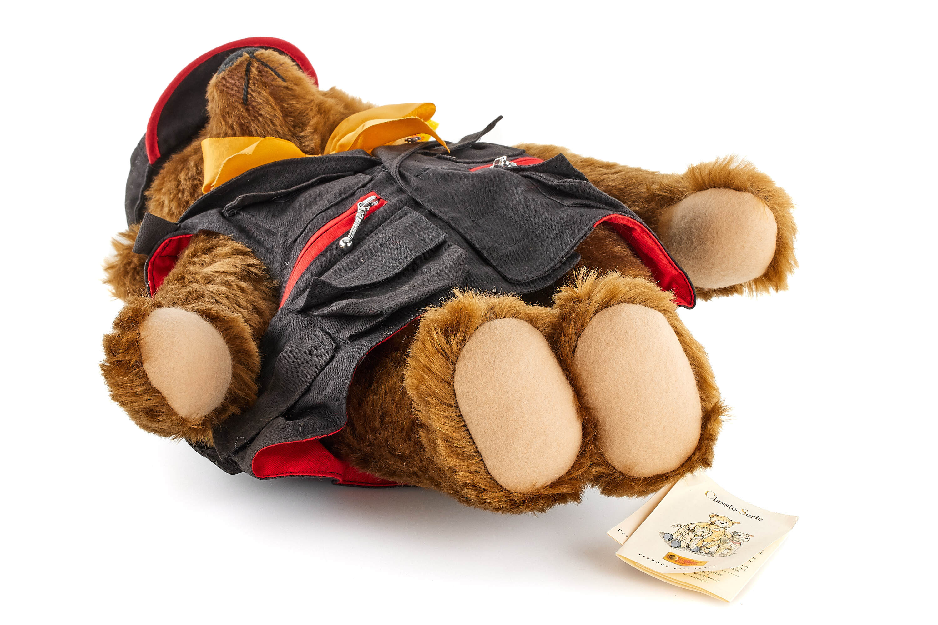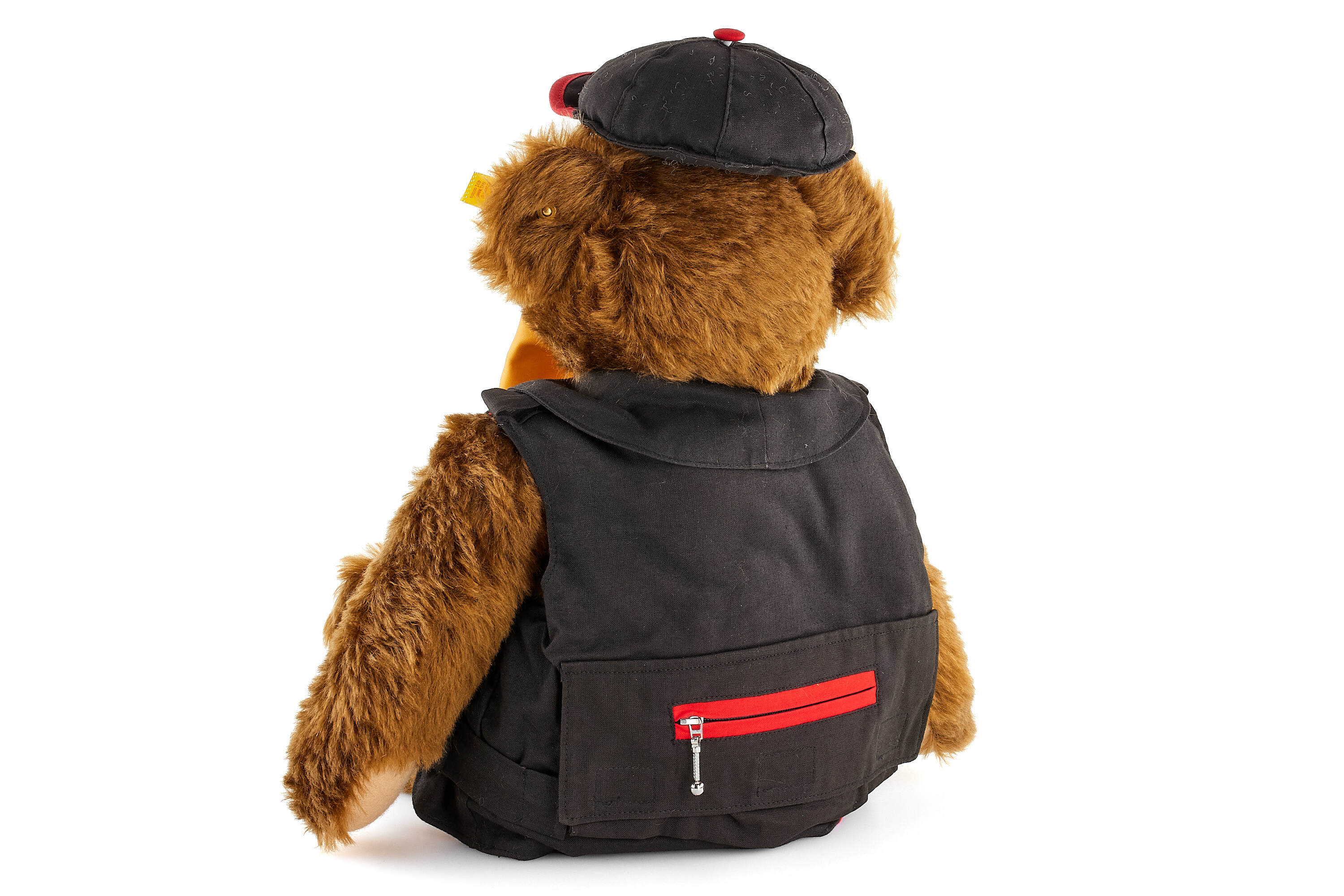 Rare limited edition Leica teddy bear made by Steiff in 2000, 43cm height, in mint condition, with Minox Leica IIIf replica no.525001, with film, papers, wooden presentation box and maker's box.