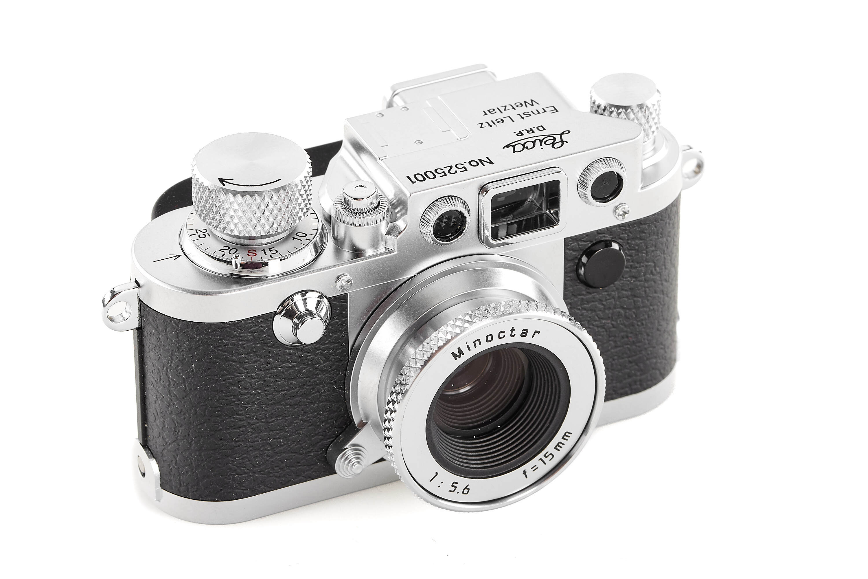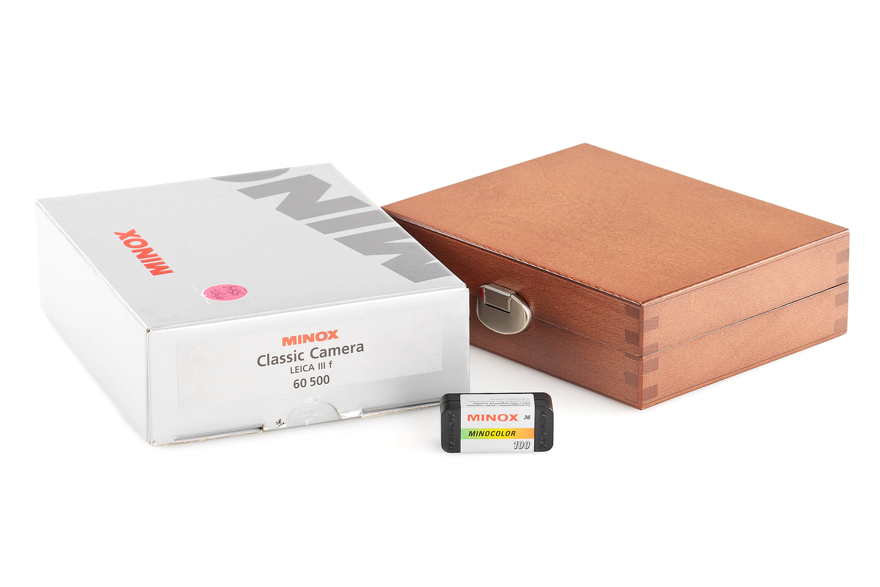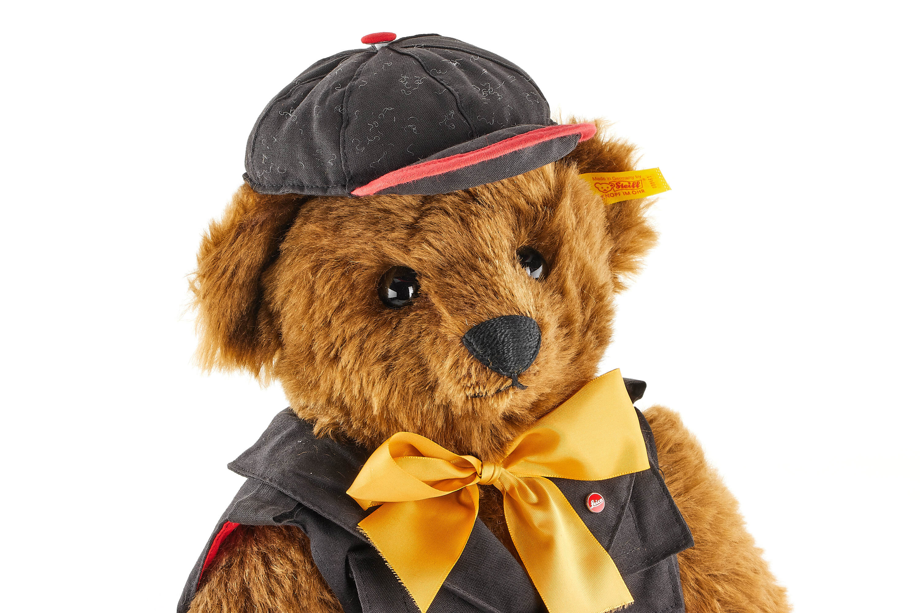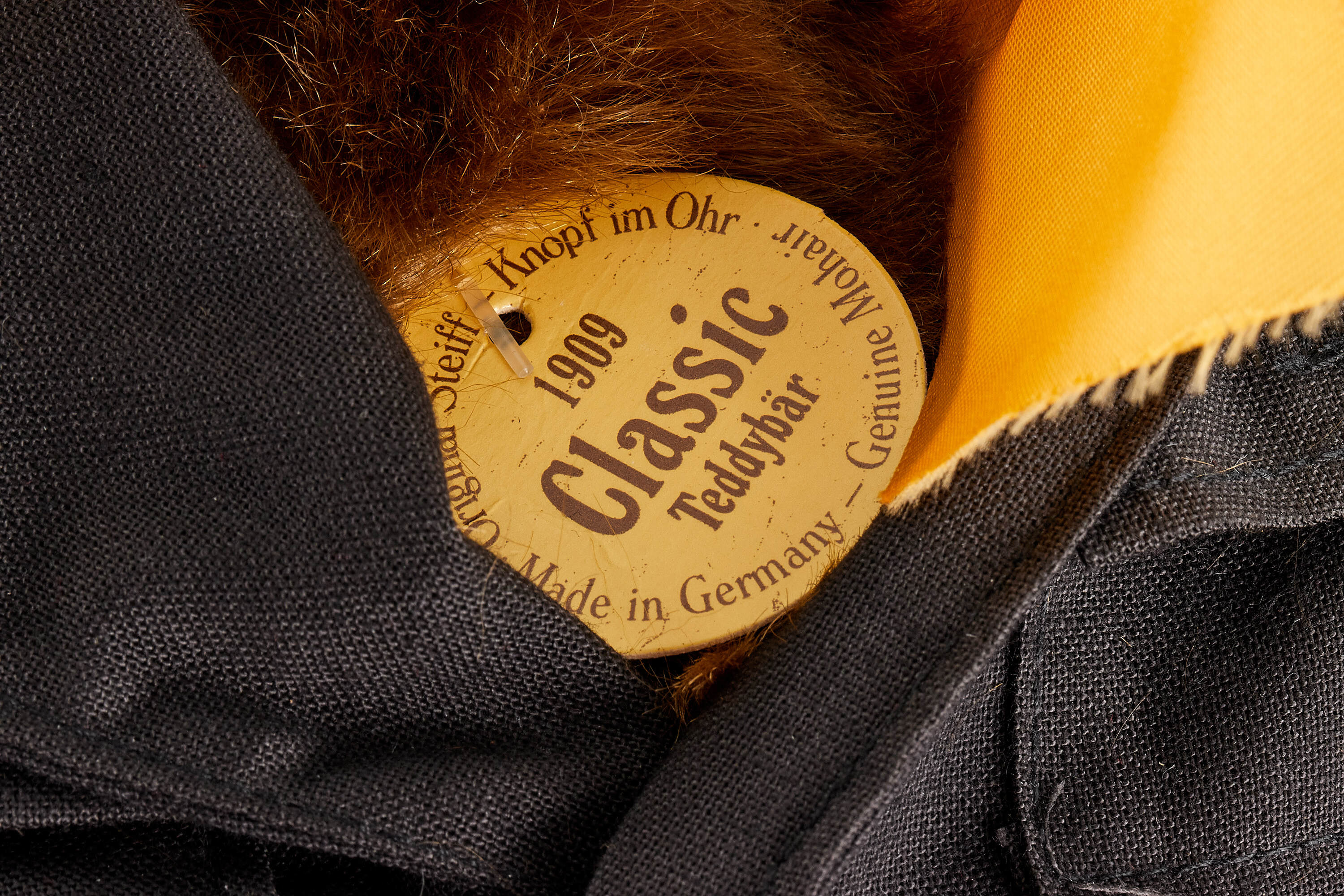 Rare limited edition Leica teddy bear made by Steiff in 2000, 43cm height, in mint condition, with Minox Leica IIIf replica no.525001, with film, papers, wooden presentation box and maker's box.