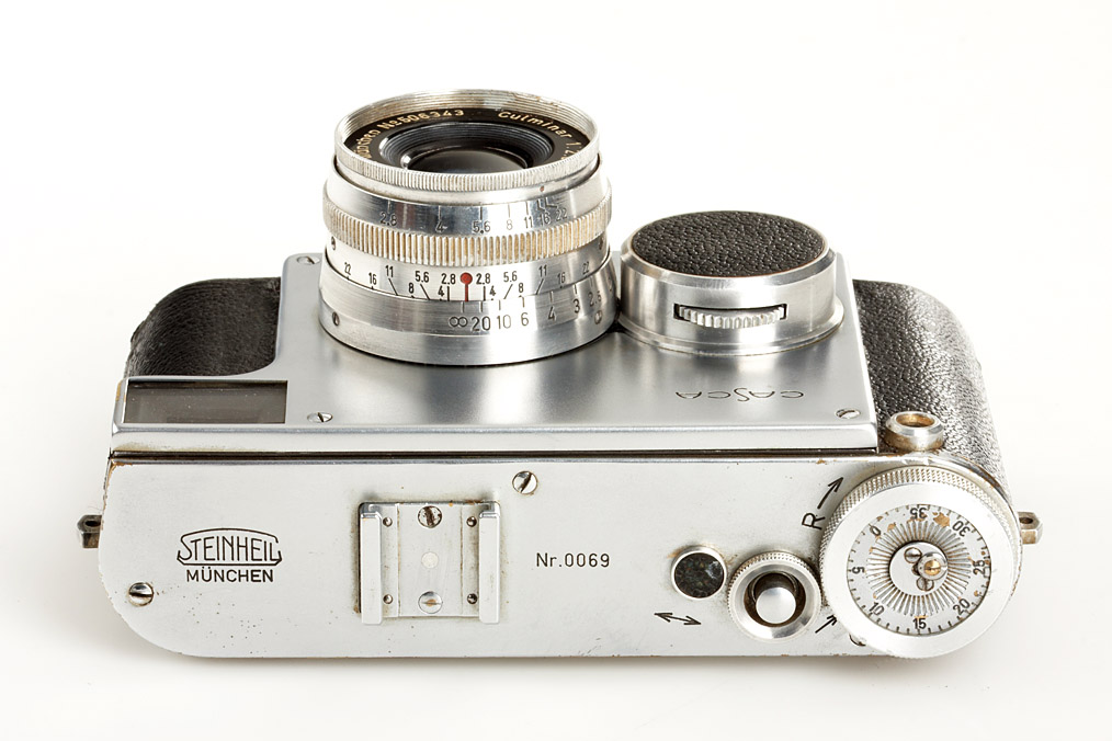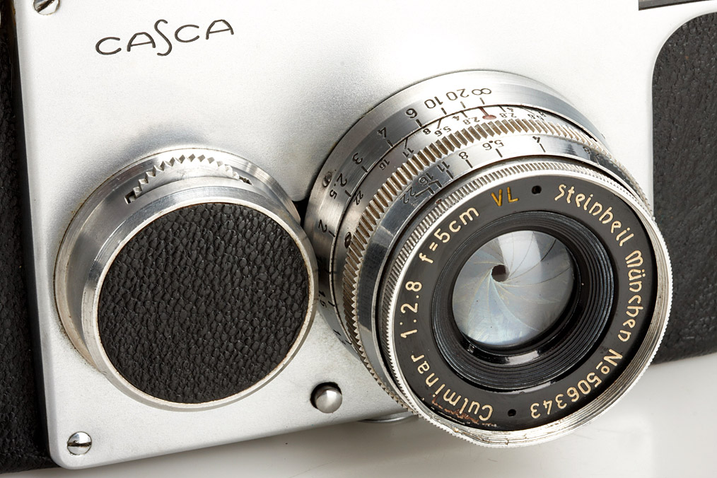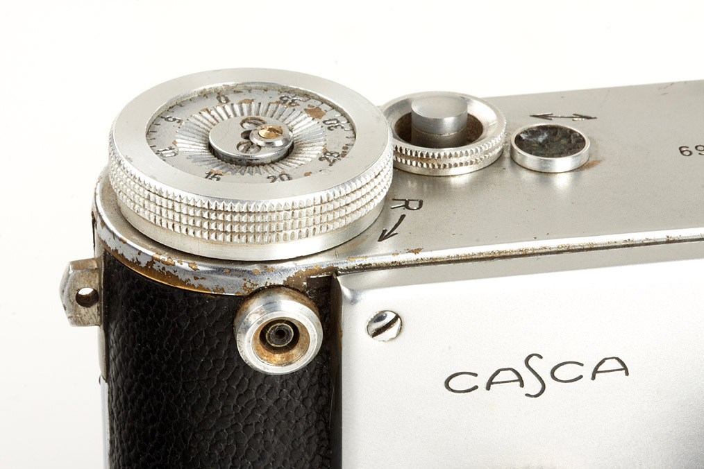 pre-series Casca in original condition, some details different to the later production models (without 'A' engraving, 4-digit serial number, counter, syn. etc.), Culminar 2.8/5cm VL no.506343 with black front, shutter needs service, everready case