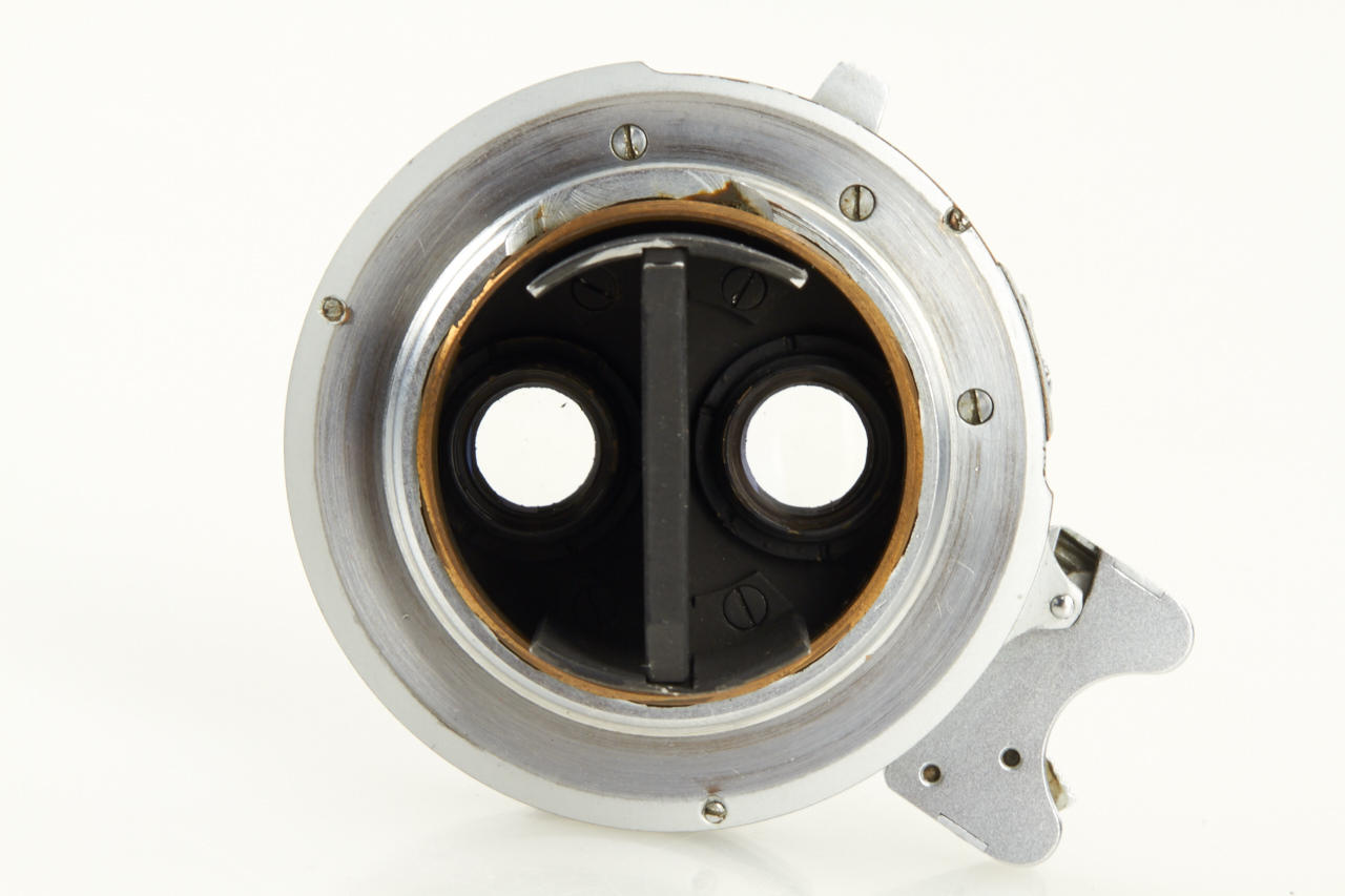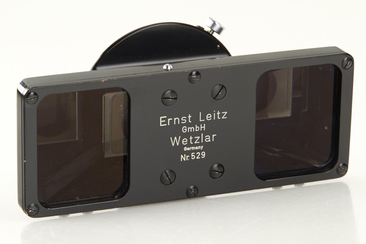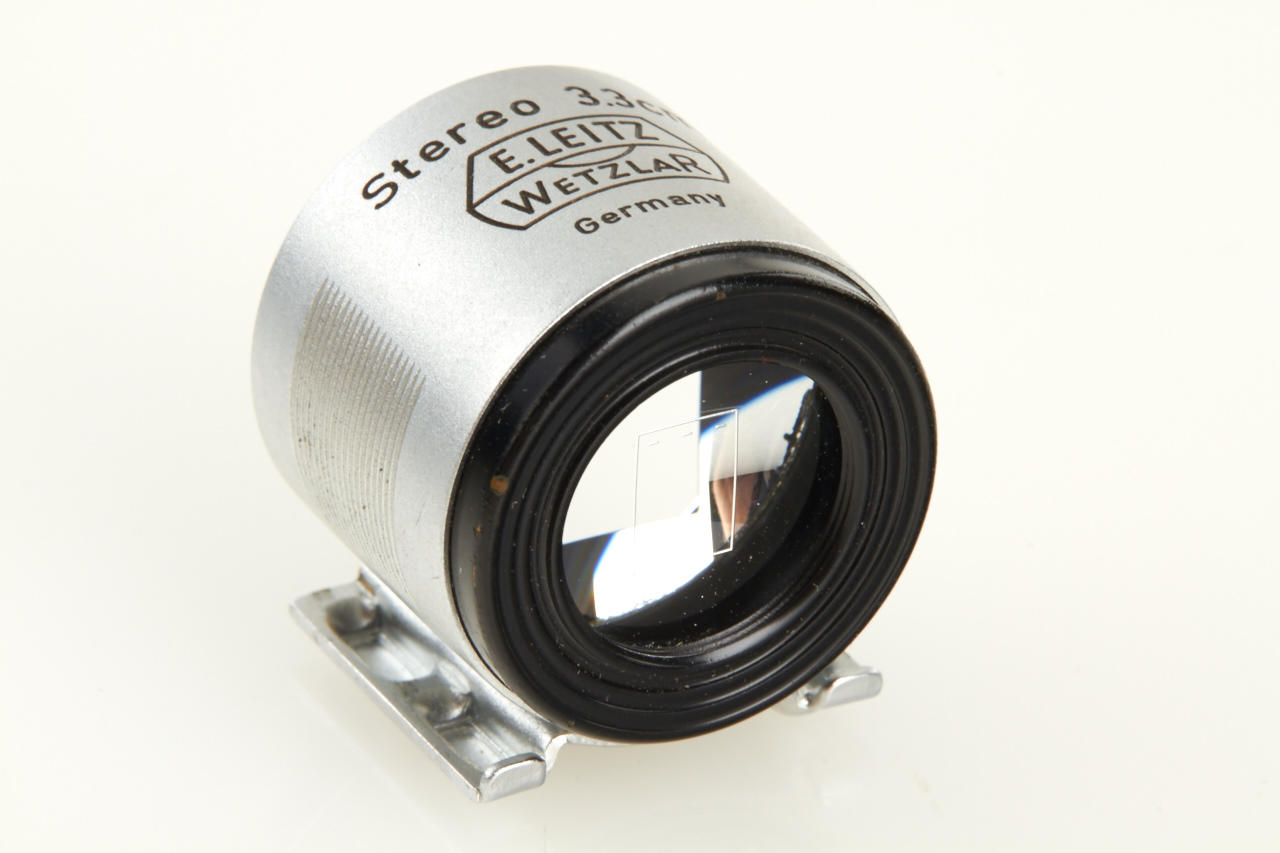 Famous and extremely rare Wetzlar Stereo outfit ex Dr. Bawendi collection including Wetzlar Stemar OISBO 3.5/3.3cm no.1054083 (with caps OIWKO and OIXMO), Wetzlar OIMPO beam splitter no.529, OIGEO hood engraved ' Ernst Leitz GmbH Wetzlar, OIDYO BL finder engraved 'Stereo 3.3cm E.LEITZ WETZLAR Germany' - all like new with perfect lenses in fitted leather case OIKLO-S. Included in this lot are also 2 extremely rare (prototype) close-up attachments with bayonet mount (to be used with screw mount or M cameras) for 0.50 - 1m (engraved 'Ernst Leitz GmbH Wetzlar Germany Stemar-Vorsatz 0.50 - 1m', with original wooden box) and for 60cm (engraved 'Ernst Leitz GmbH Wetzlar Germany 60cm', with Leitz leather case) and mint Leitz Prado 150 projector with stereo projection lens IMPUU engraved 'Ernst Leitz GmbH Wetzlar Germany Epis f=5cm 1:3.5'. According to Dr. Bawendi the projection lens Epis is the only known sample. The outfit is illustrated and described in 'Vidom Nr.22 pages 28-36