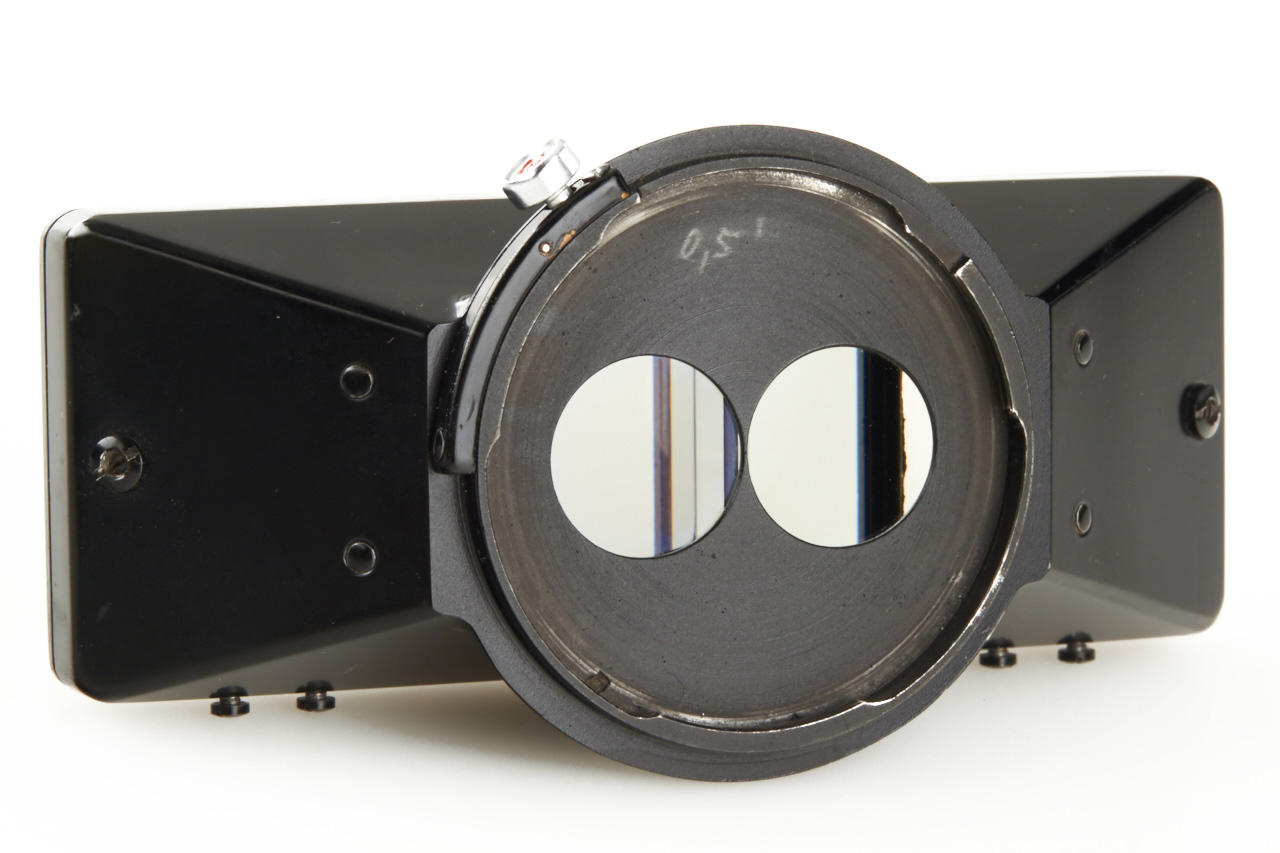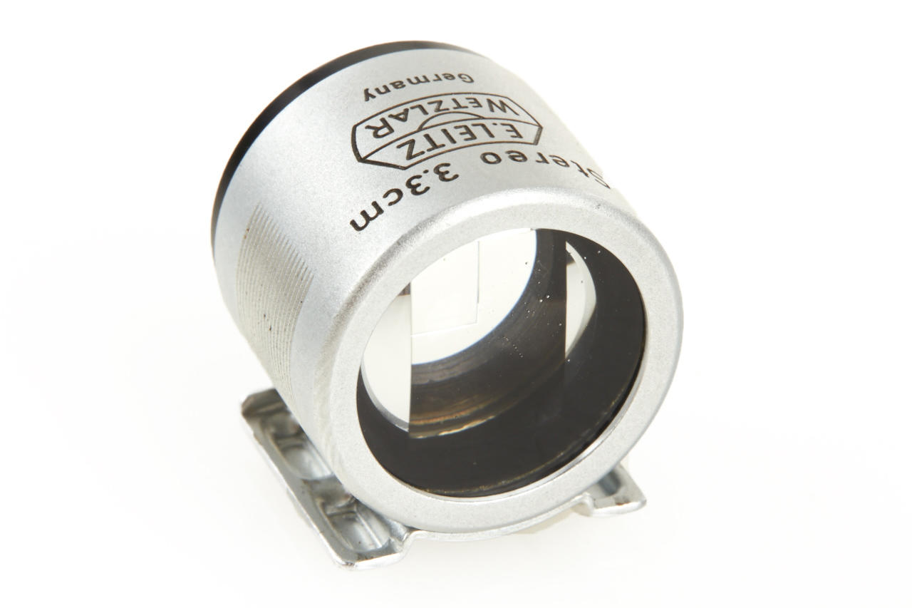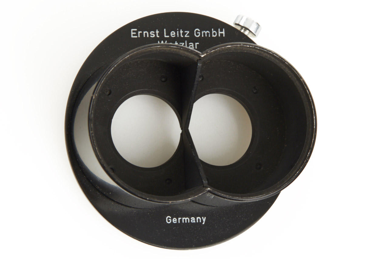 Famous and extremely rare Wetzlar Stereo outfit ex Dr. Bawendi collection including Wetzlar Stemar OISBO 3.5/3.3cm no.1054083 (with caps OIWKO and OIXMO), Wetzlar OIMPO beam splitter no.529, OIGEO hood engraved ' Ernst Leitz GmbH Wetzlar, OIDYO BL finder engraved 'Stereo 3.3cm E.LEITZ WETZLAR Germany' - all like new with perfect lenses in fitted leather case OIKLO-S. Included in this lot are also 2 extremely rare (prototype) close-up attachments with bayonet mount (to be used with screw mount or M cameras) for 0.50 - 1m (engraved 'Ernst Leitz GmbH Wetzlar Germany Stemar-Vorsatz 0.50 - 1m', with original wooden box) and for 60cm (engraved 'Ernst Leitz GmbH Wetzlar Germany 60cm', with Leitz leather case) and mint Leitz Prado 150 projector with stereo projection lens IMPUU engraved 'Ernst Leitz GmbH Wetzlar Germany Epis f=5cm 1:3.5'. According to Dr. Bawendi the projection lens Epis is the only known sample. The outfit is illustrated and described in 'Vidom Nr.22 pages 28-36