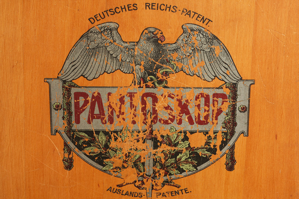 rare German 9x18cm viewer made of fruitwood with adjustable focus made by Willi Winter Company of Leipzig-Connewitz, the box-shaped stand also serves as the container for the viewer and the cards, impressive company label on the front, the viewer is in very good original condition and comes with the original catalogue of ‘Pantoskop’ views. A highly collectable and scarce stereoscope!
