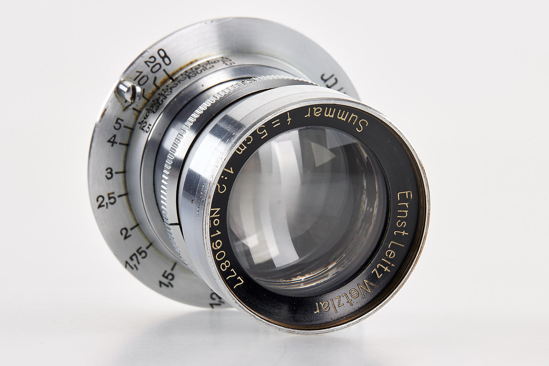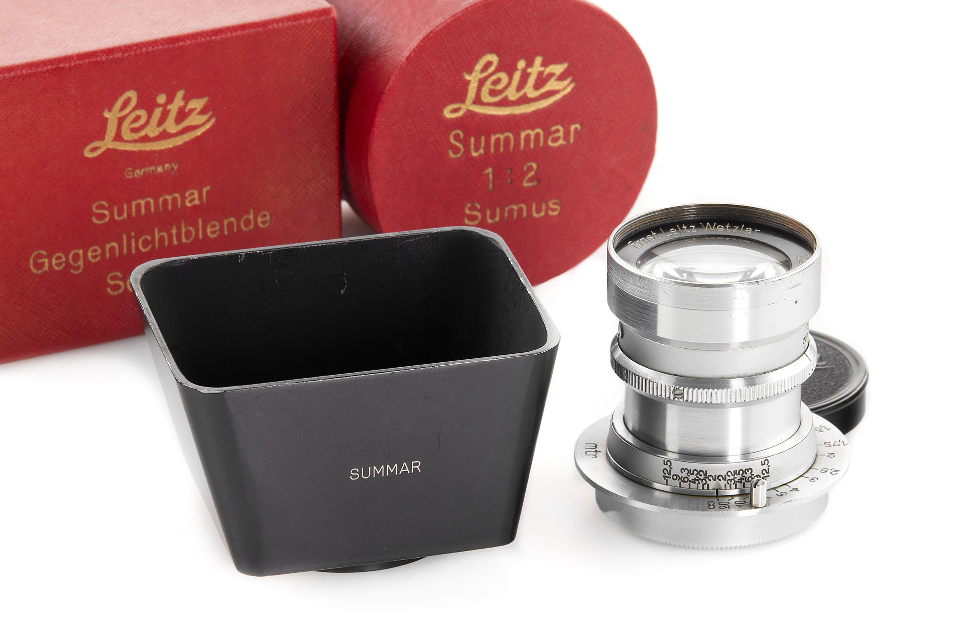 rigid Summar in excellent condition, with good optics, including both caps, red maker's box and boxed SOOMP hood, very uncommon in chrome finish and in this good condition
