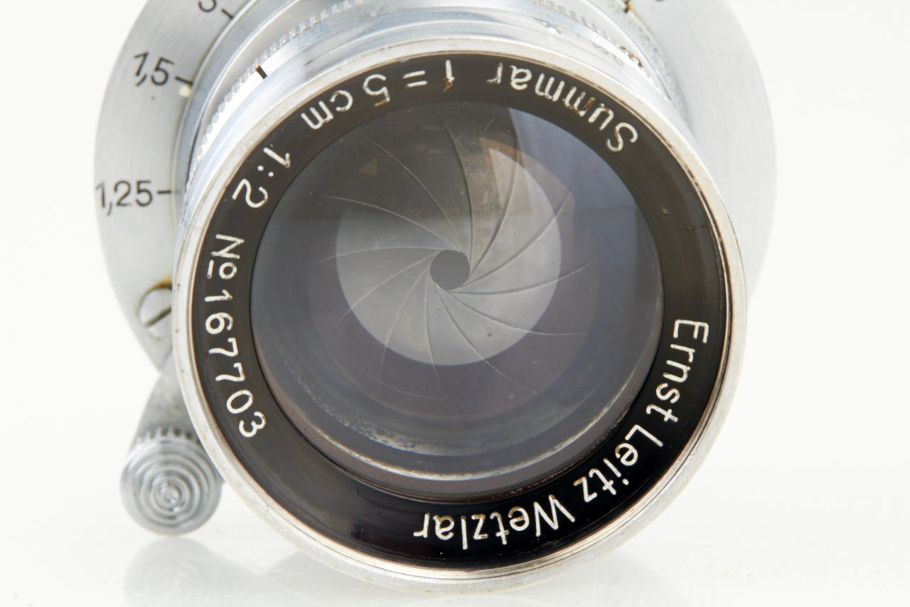 rare early rigid Summar in chrome finish, aperture to f.12.5, good optics with slight cleaning marks, with original front and rear cap