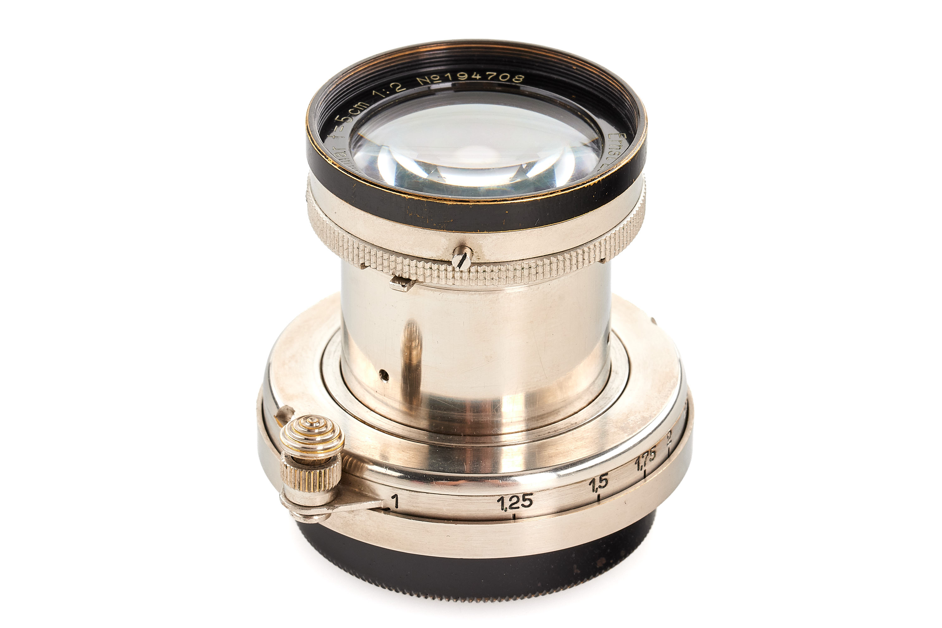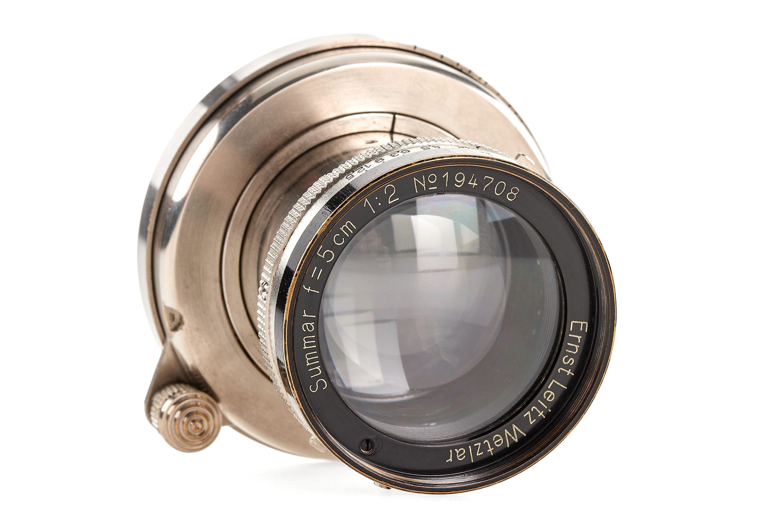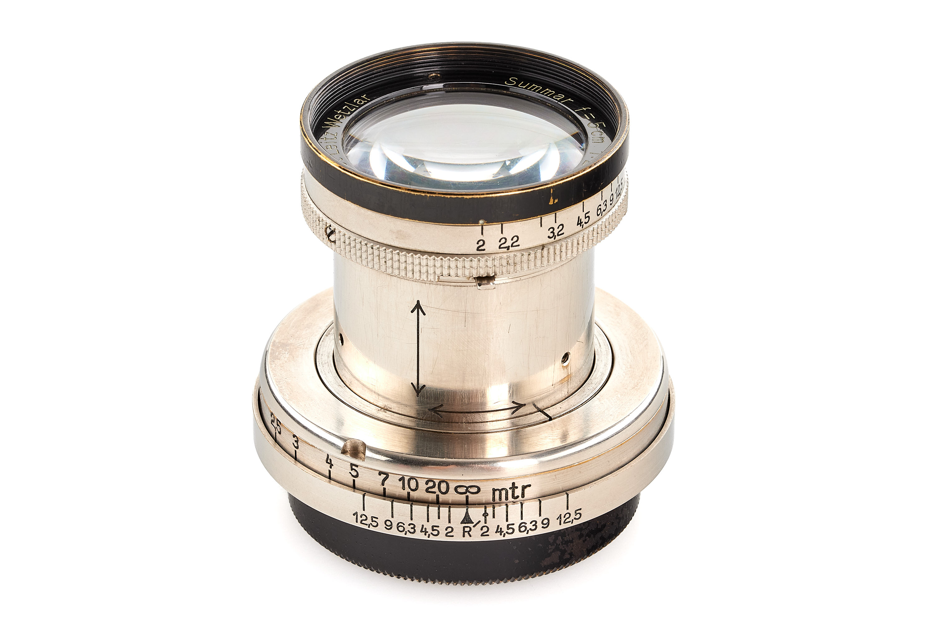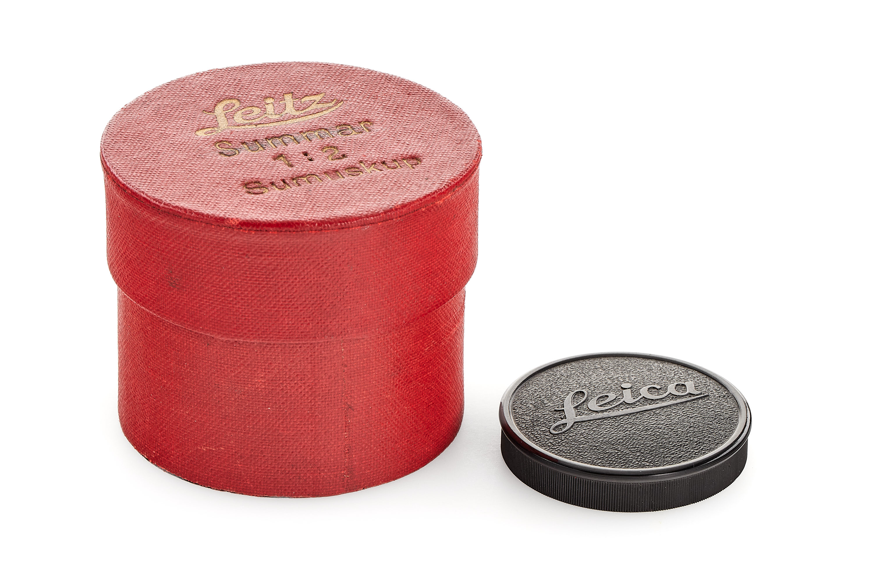 Quite rare nickel Summar with black painted front ring, in almost mint condition, good optics only showing a light haze and few minor cleaning marks, meter scale delivered to Berlin on 26.03.1934, with both caps and red maker's box.
