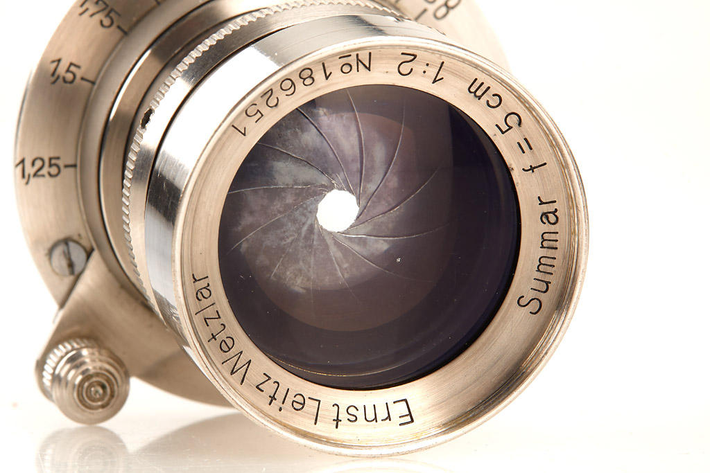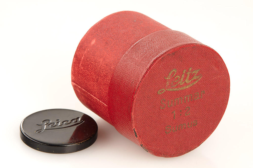 very interesting variation of the rare rigid Summar (closes down to f12.5) with nickel front ring (usually in black), the lens is in perfect condition with clean optics (both caps), red 'Sumus' box