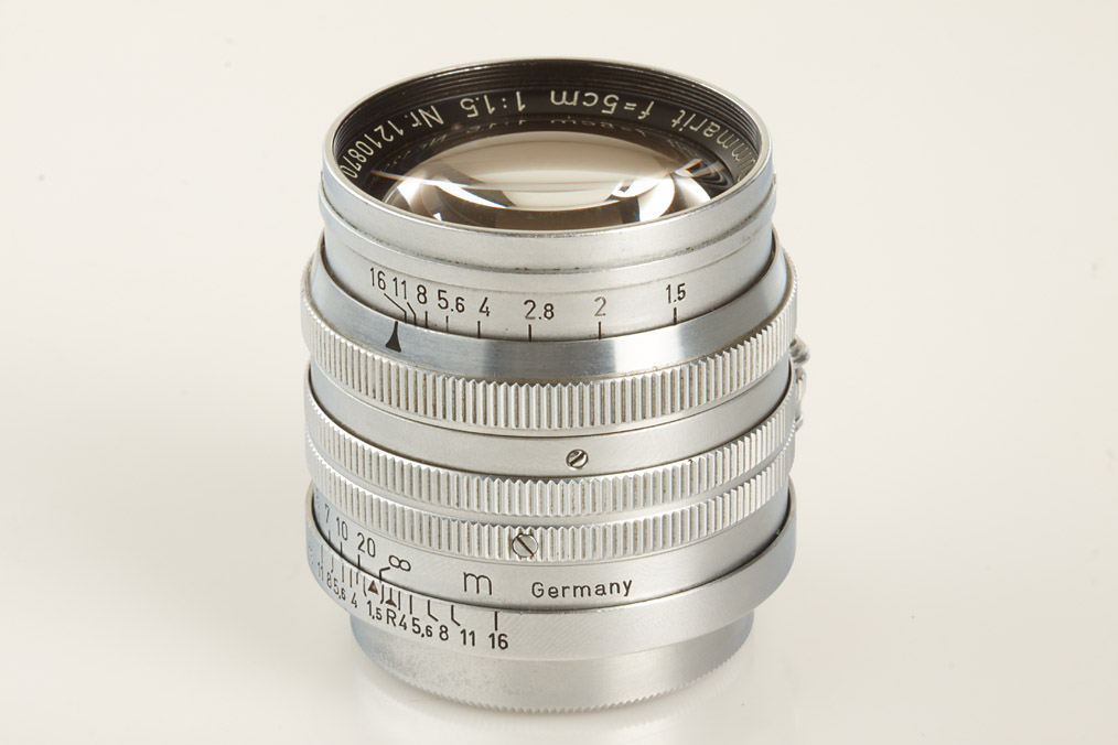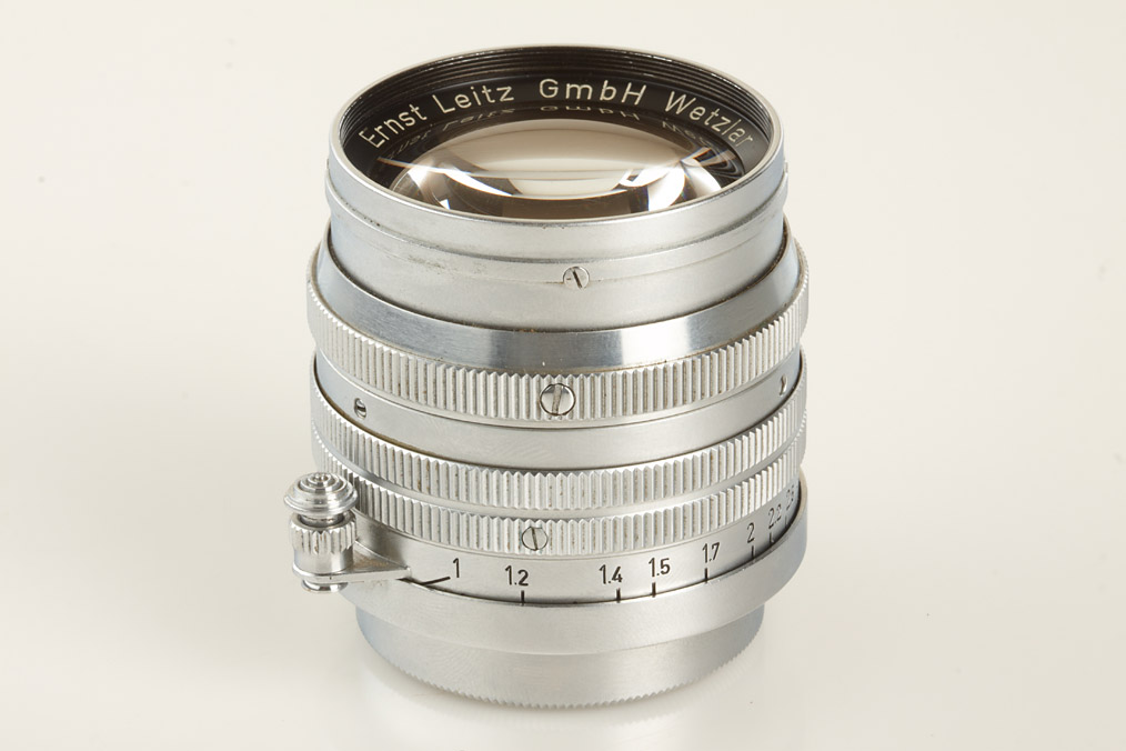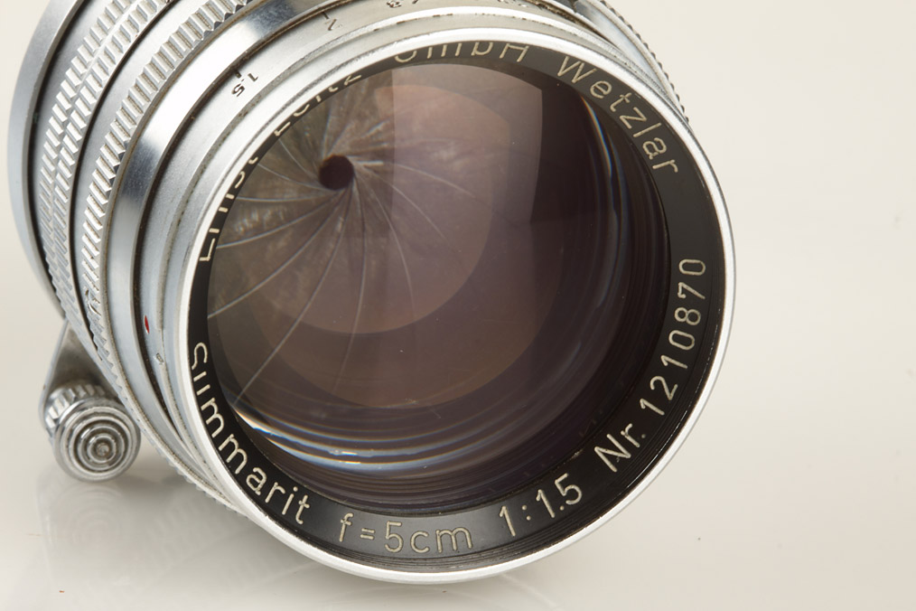 near mint Summarit, small cleaning marks, meter scale, caps, black bakelite keeper, XOONS hood