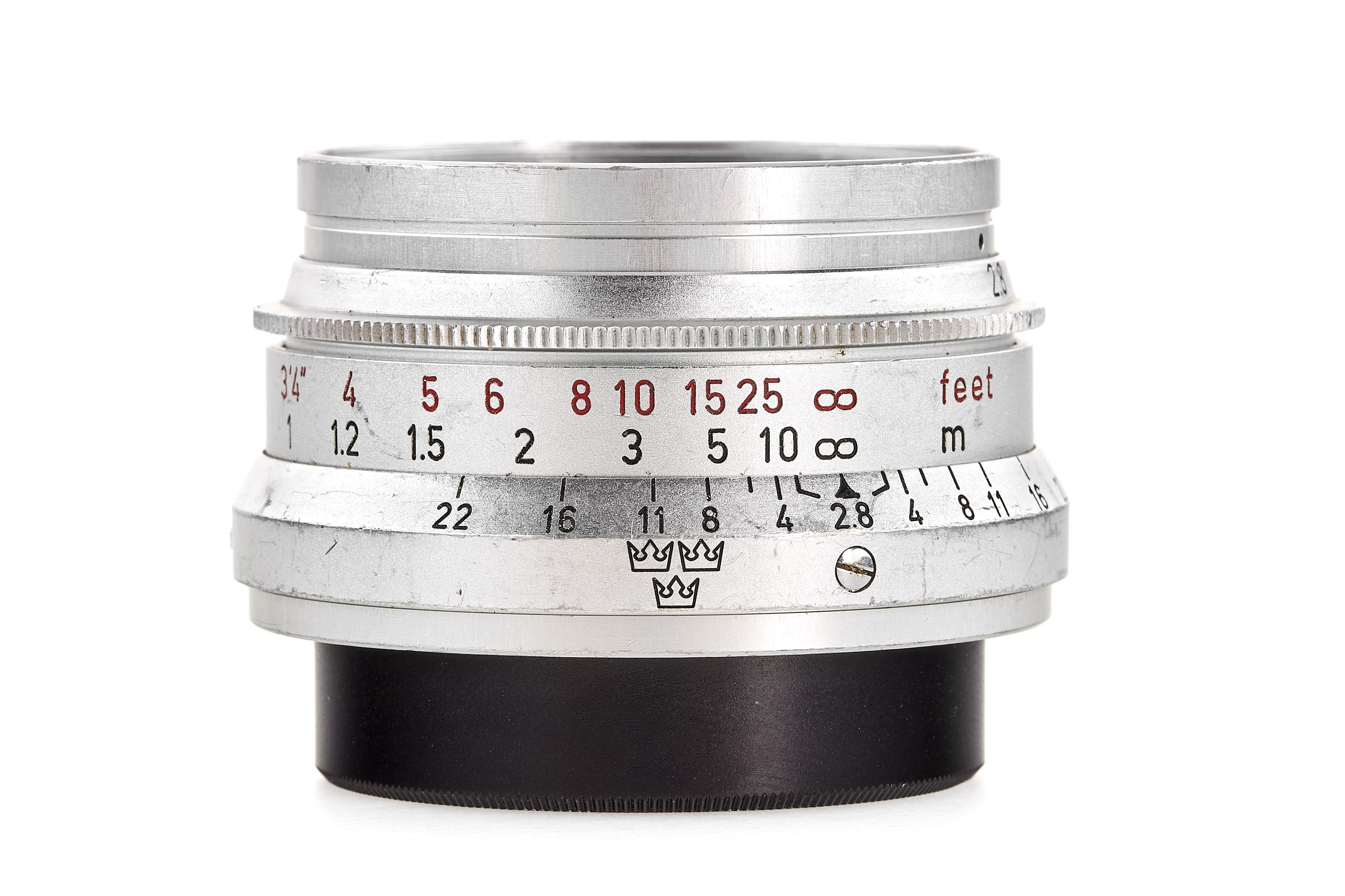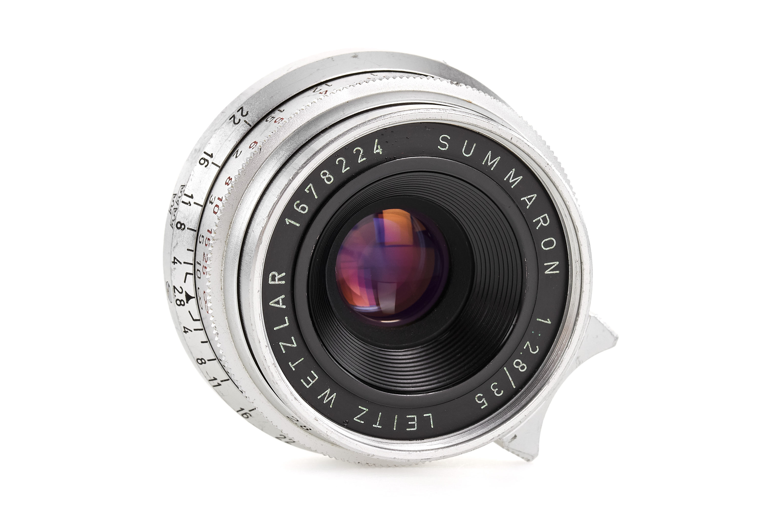 Extremely rare military silver chrome Summaron 2.8/35mm no.1678224, in very good condition, clean and clear optics, engraved with the three 'Crowns of Sweden' on the barrels, with both caps, delivered to Brandt, Stockholm, on 25.05.1960.