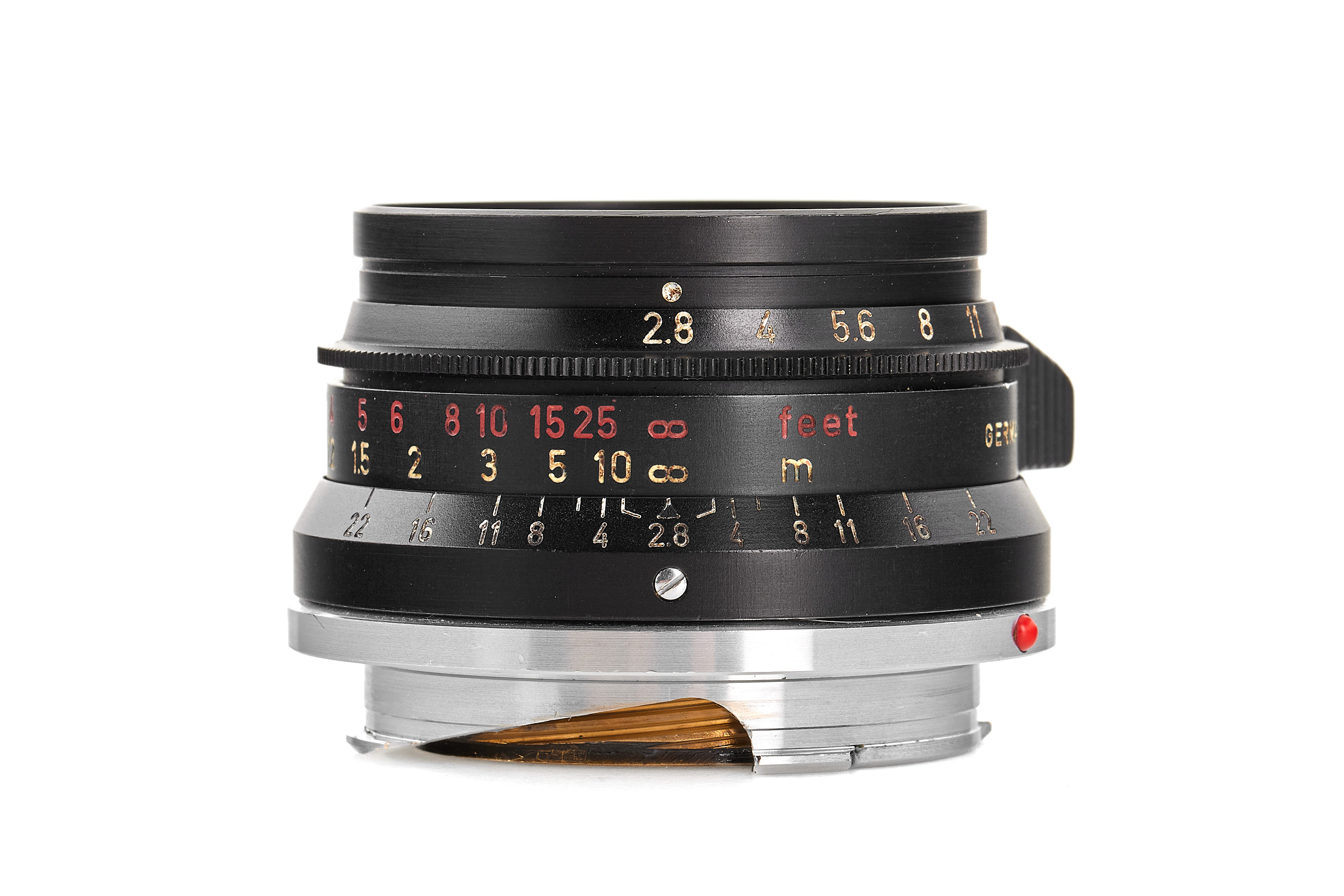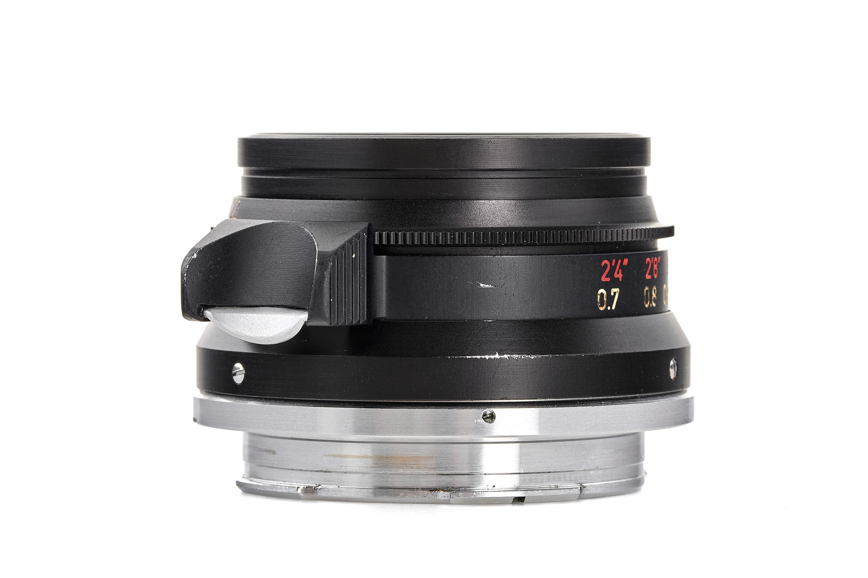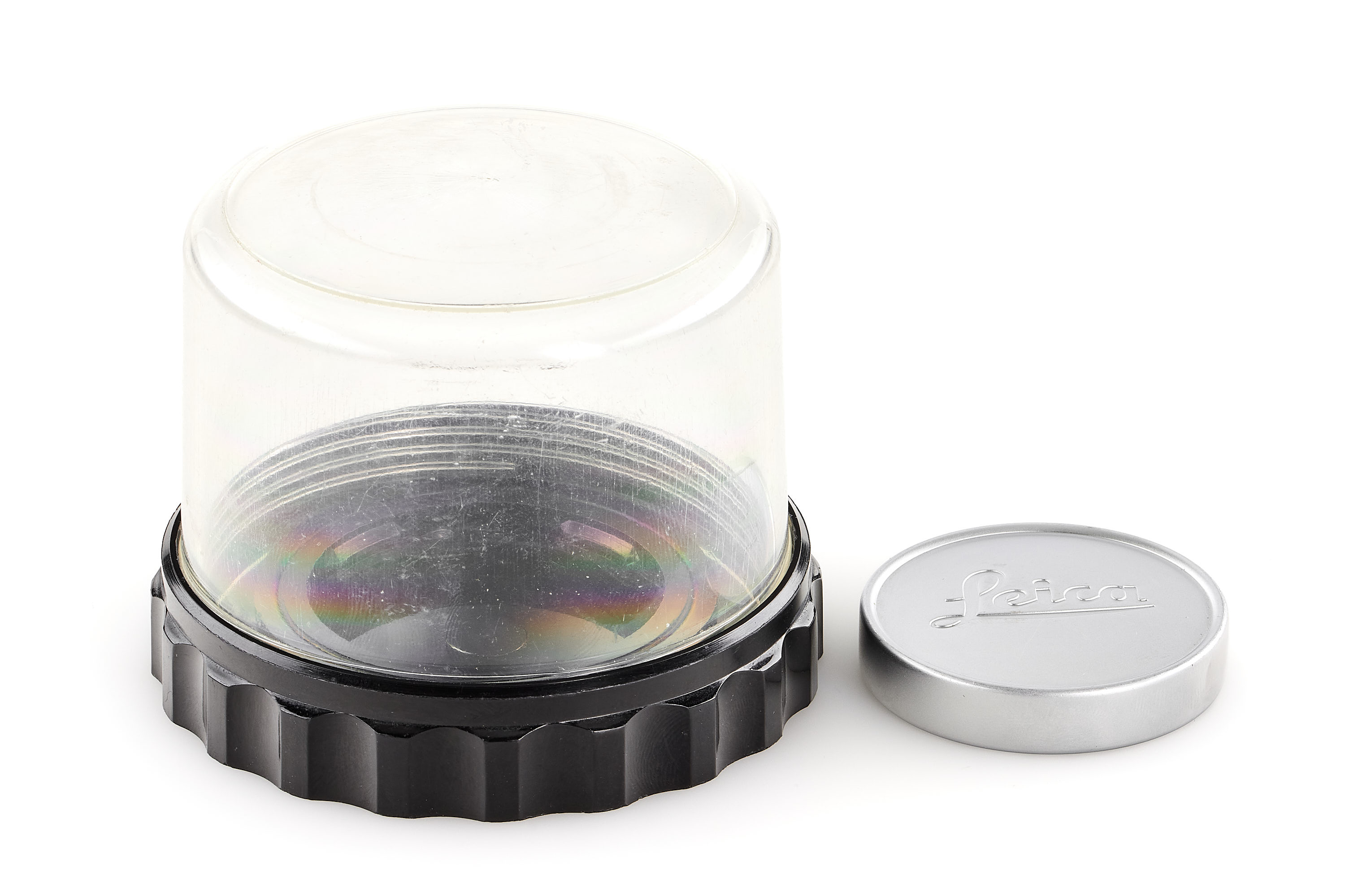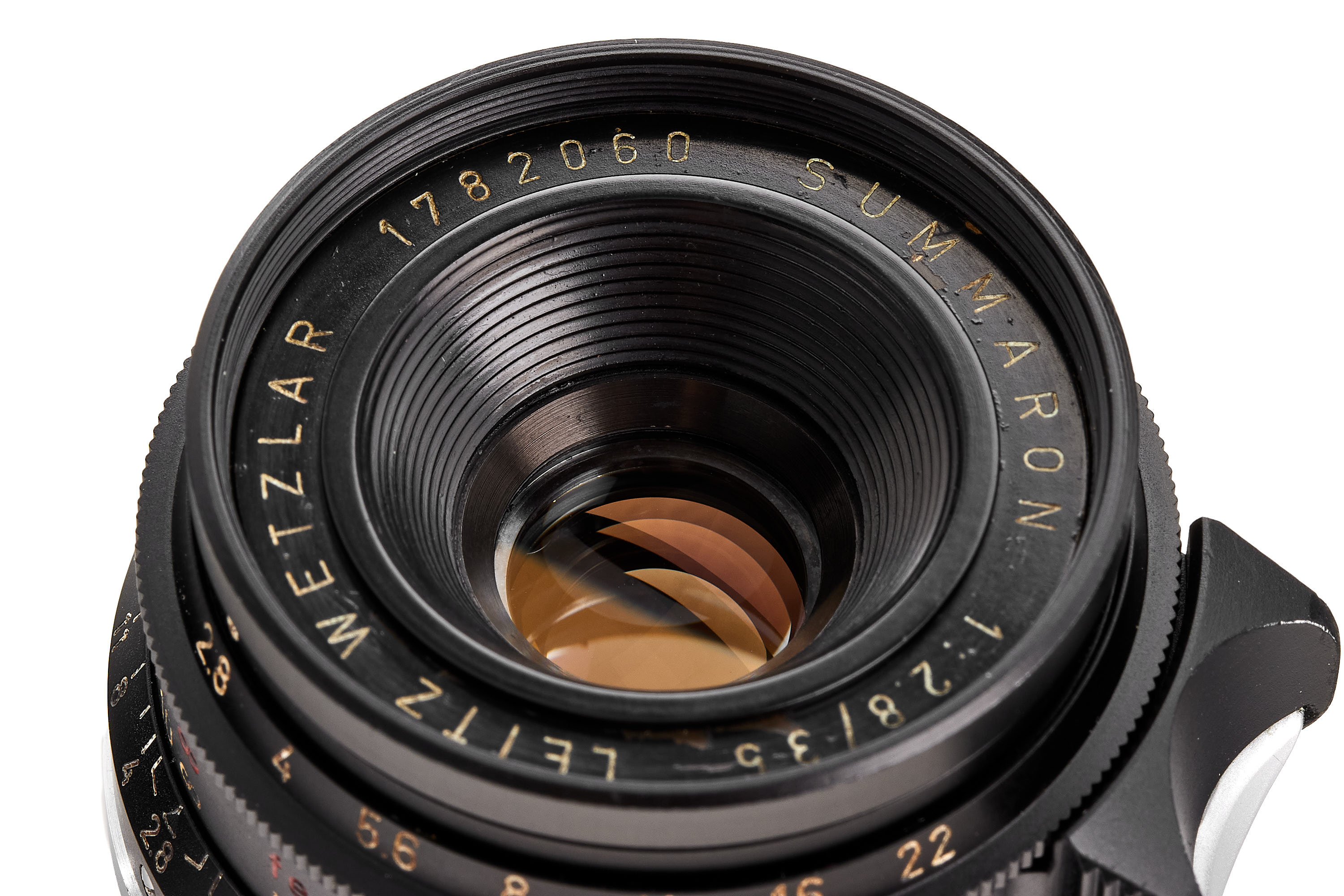 An extremely rare Summaron in black chrome finish. The lens, delivered to Brand, Sweden on 21.09.1961, was most probably made by Leitz for a special order from a customer. Another black Summaron (with goggles for use on an M3) can be seen in Lager II 'Lenses' on page 234.