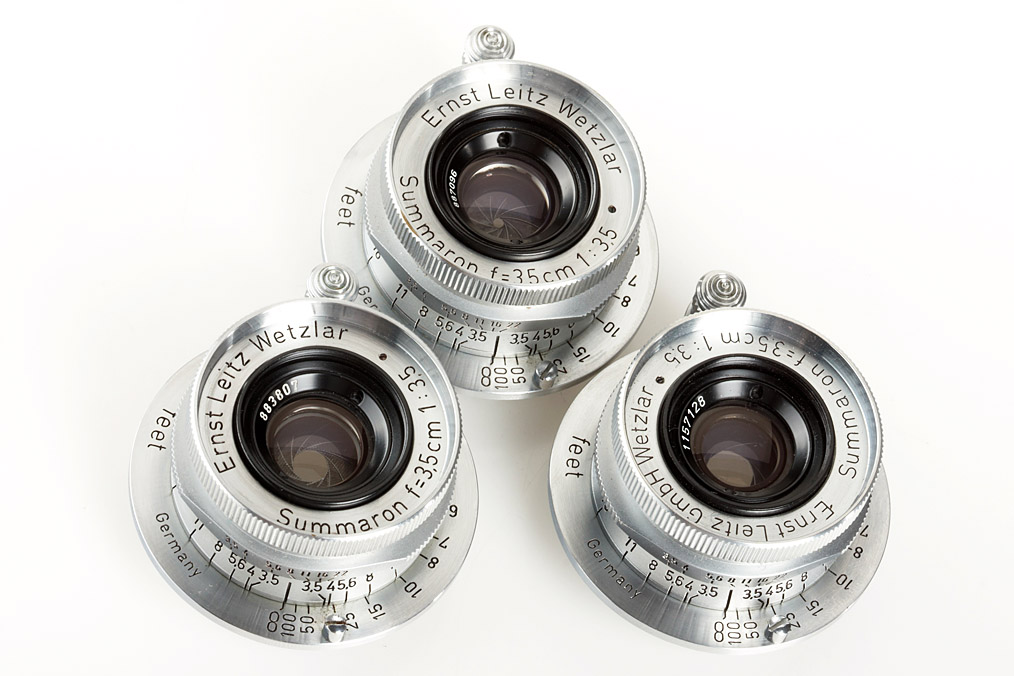 (1) A36 Summaron no.883807, (2) A36 Summaron no.887096, (3) A36 Summaron no.1157128, all lenses in fine condition (need cleaning) with caps (3)