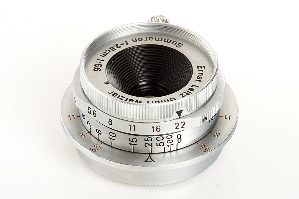 pre-series Summaron, different style of engravings to later lenses (both caps, keeper)