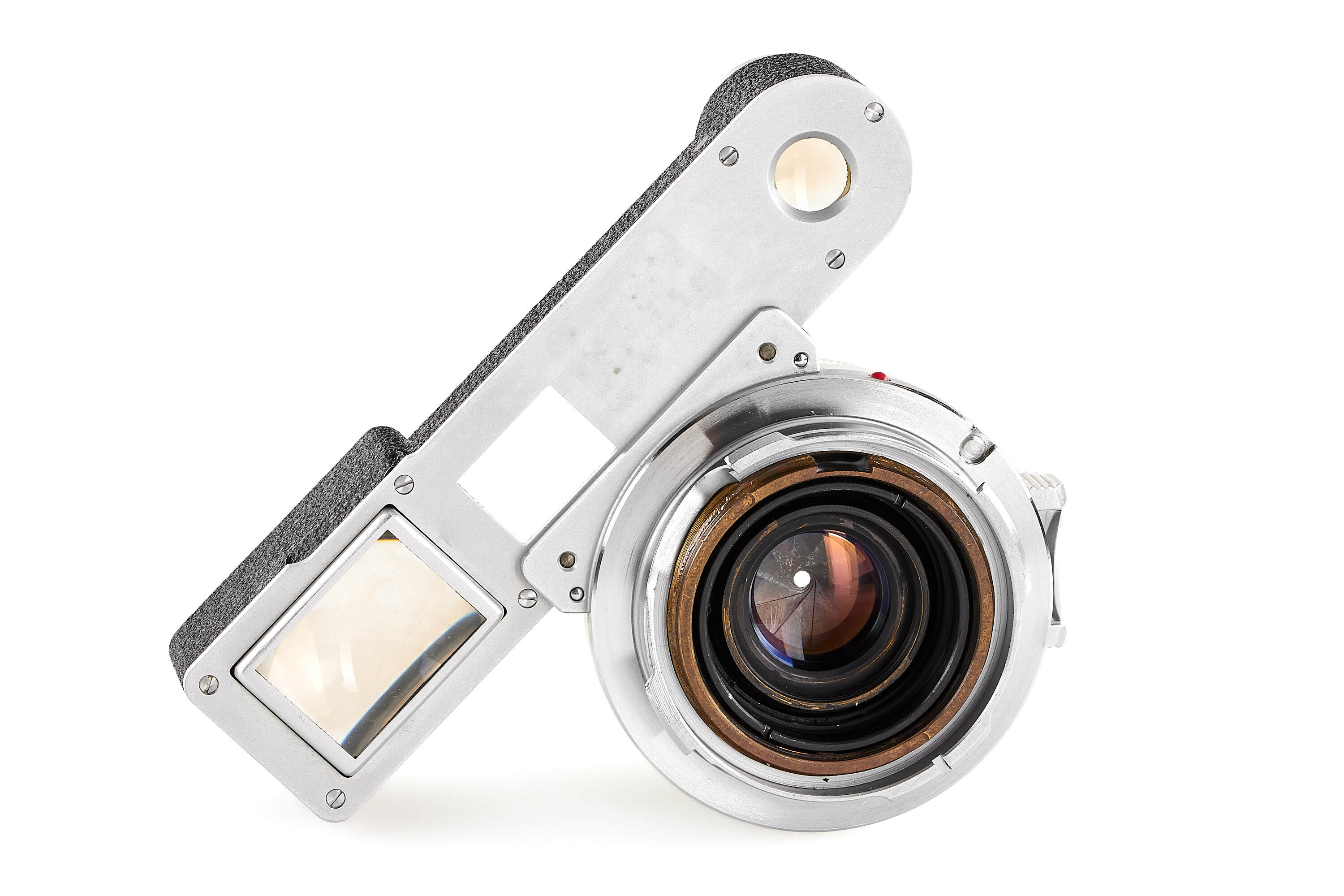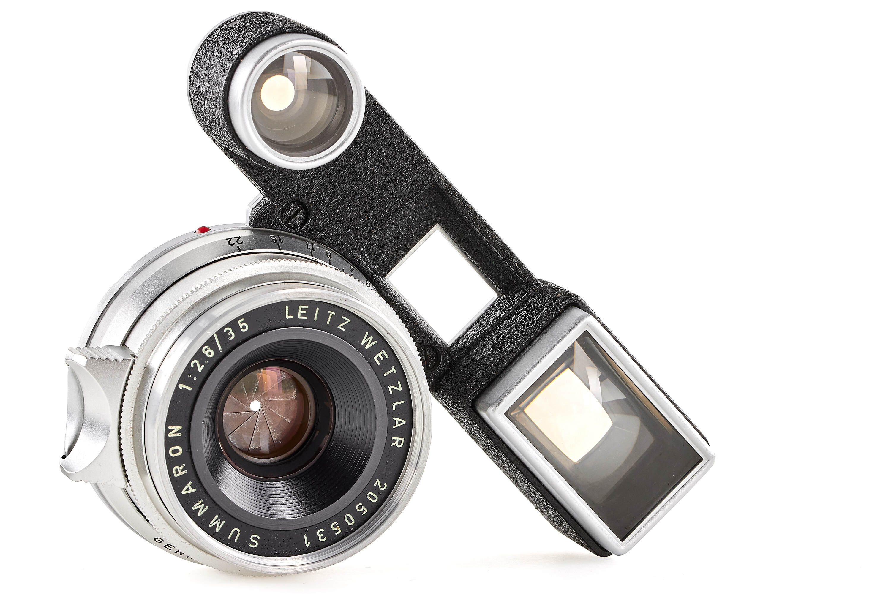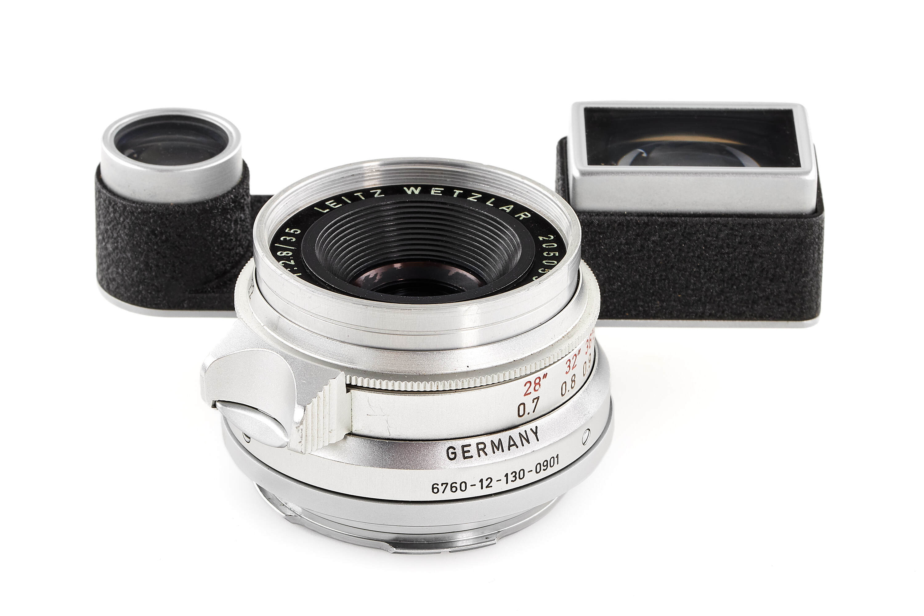 Very rare Summaron 2.8/35mm for the German Army engraved '6760-12-130-0901' on the side, in almost mint condition, version for Leica M3, with clean and clear optics, goggles showing a light haze, with front cap, original olive green keeper marked '14 564 M', with matching green strap, delivered to Koblenz on 07.09.1965.