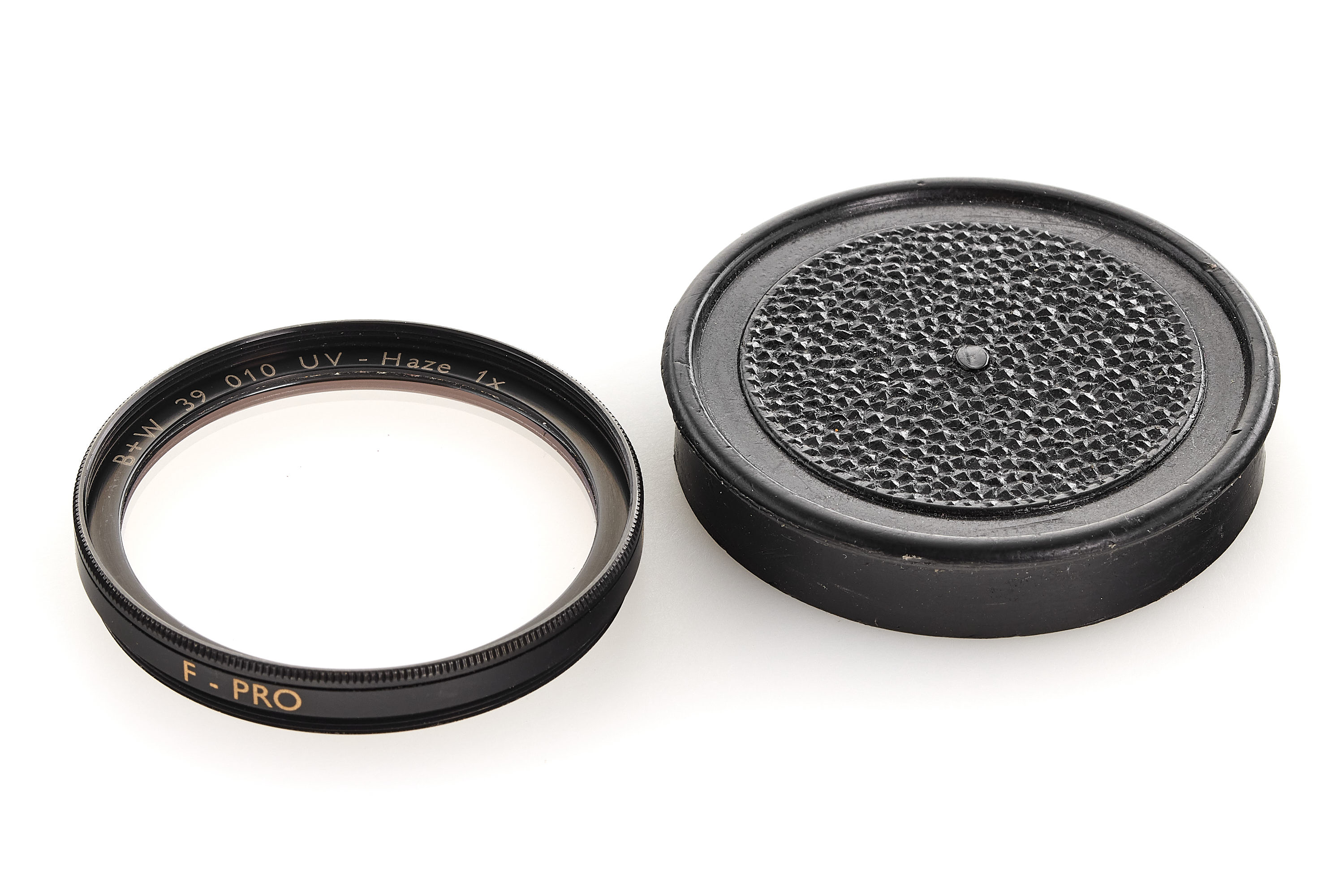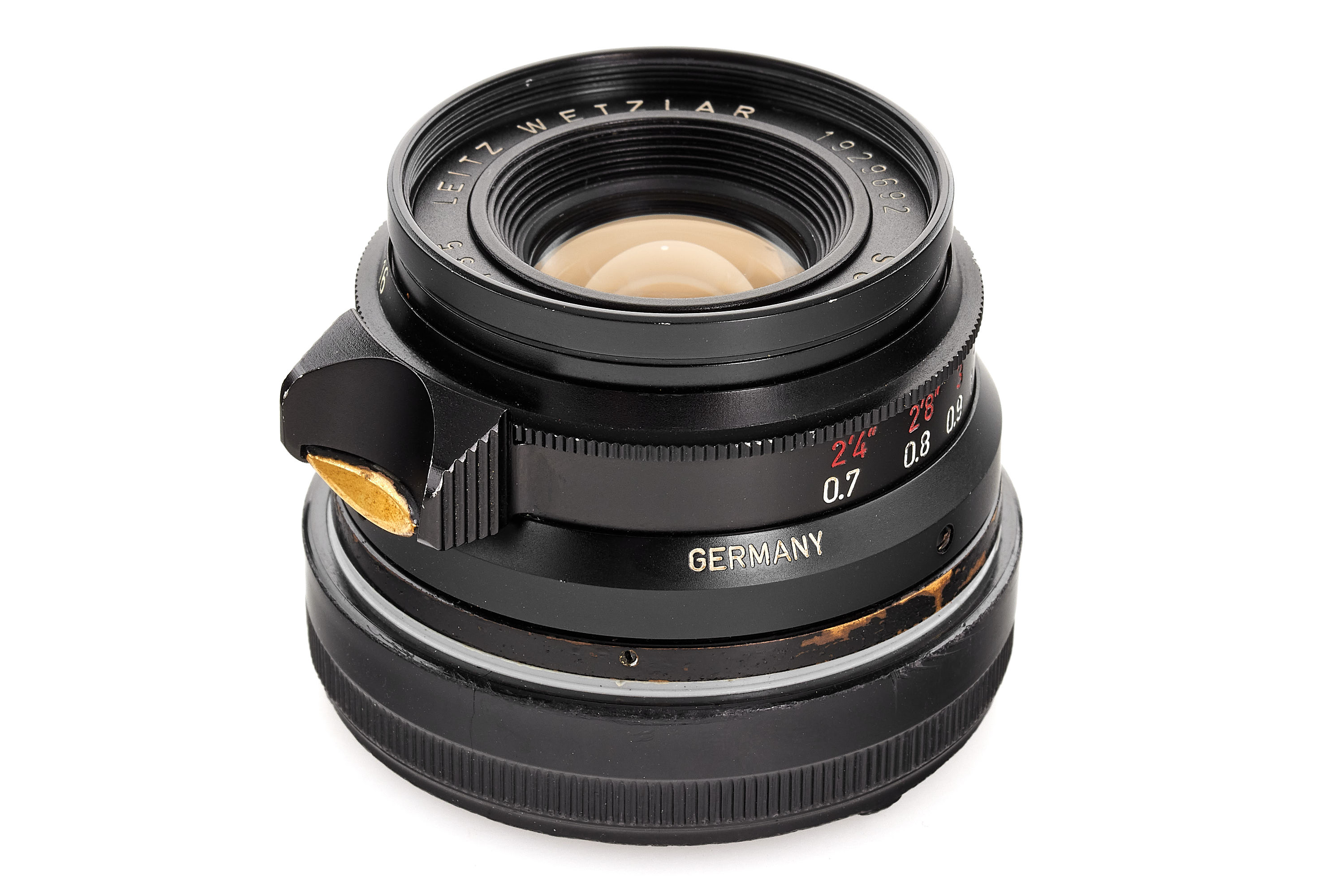infinity lock and outer rim of the mount finished in black paint, in very good condition, clean and clear optics, with rear cap.