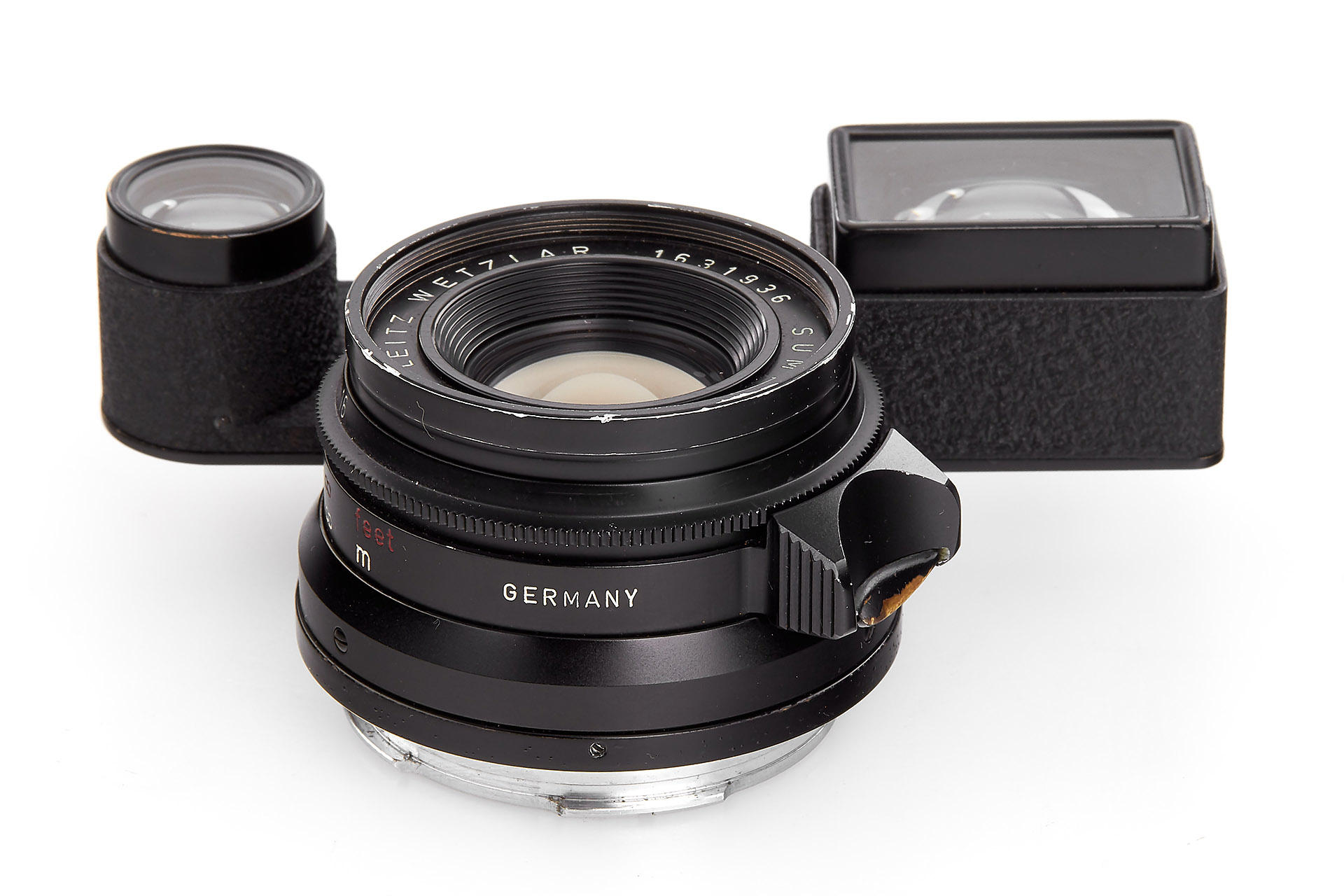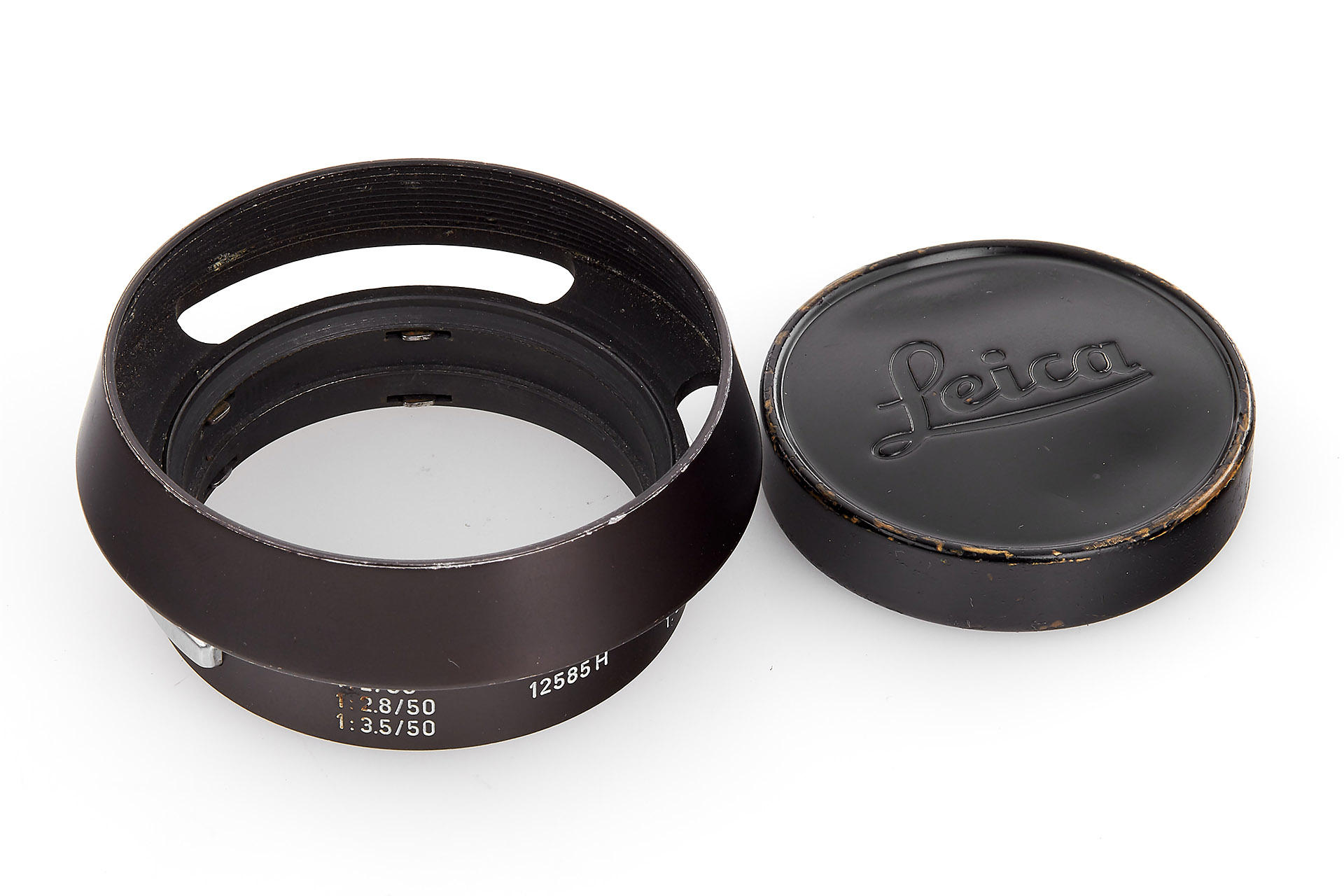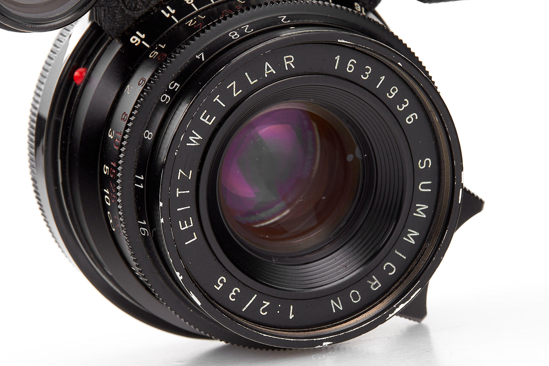 very rare black paint 8-element Wetzlar Summicron 2/35mm for M3, partly black anodized, in very good original condition, good, clean optics, with black paint front cap, rear cap and 12585H hood