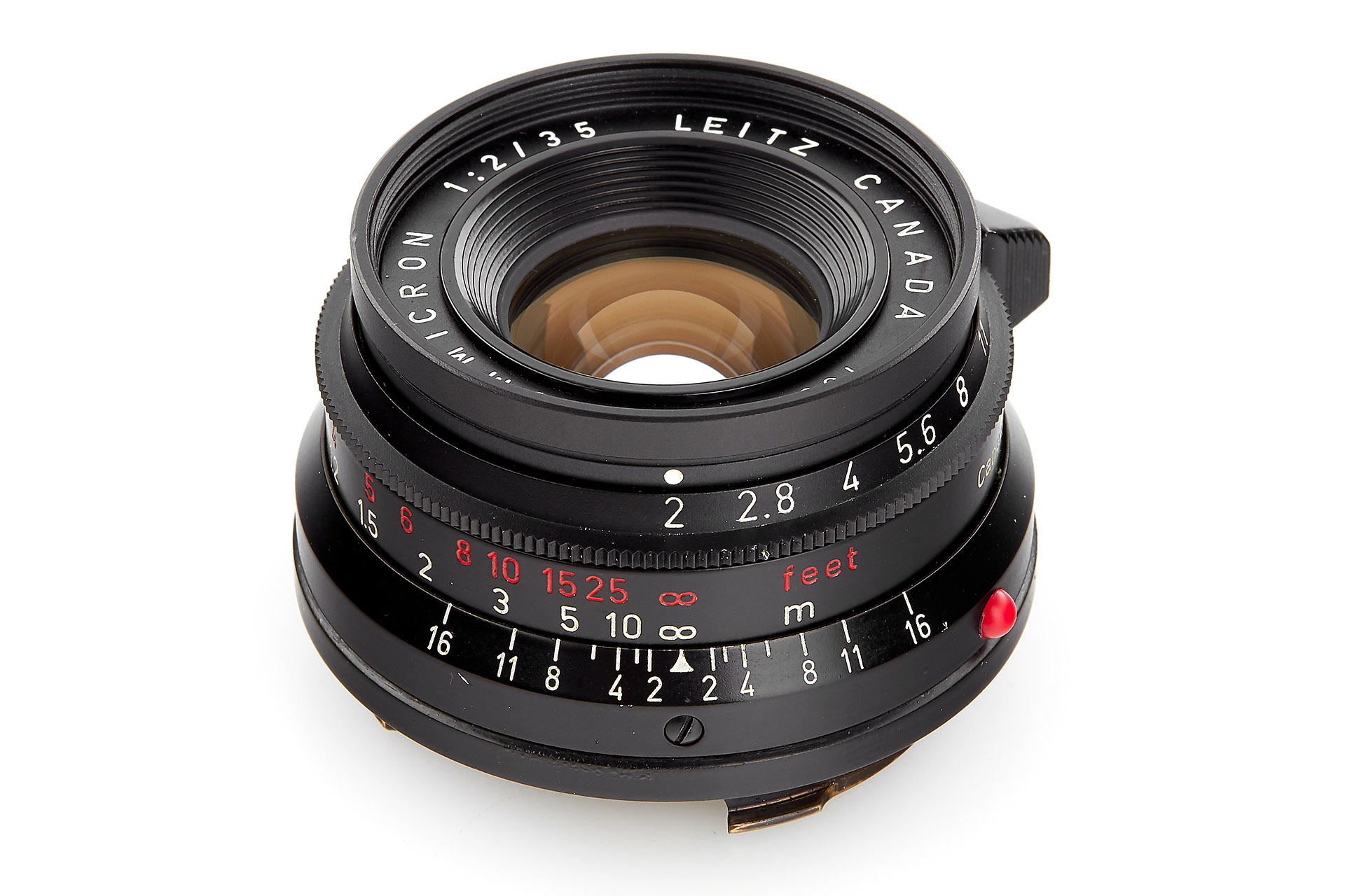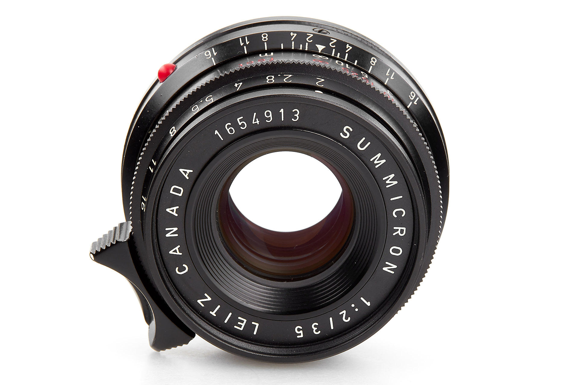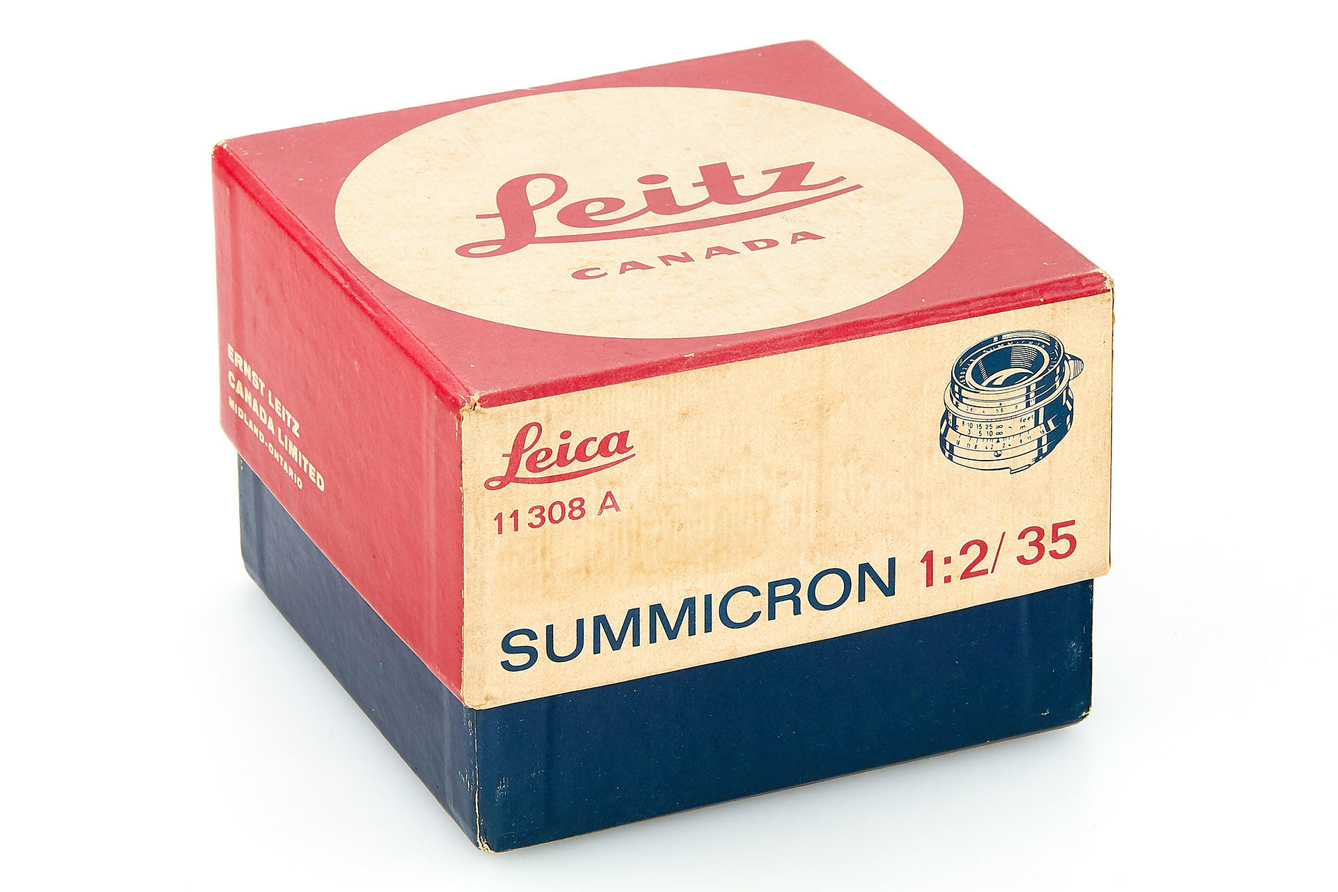 Very rare and early first type black paint 8-element Summicron with brass bayonet flange. In near mint condition with clean optics, black front cap, plastic keeper, unnumbered maker's box.