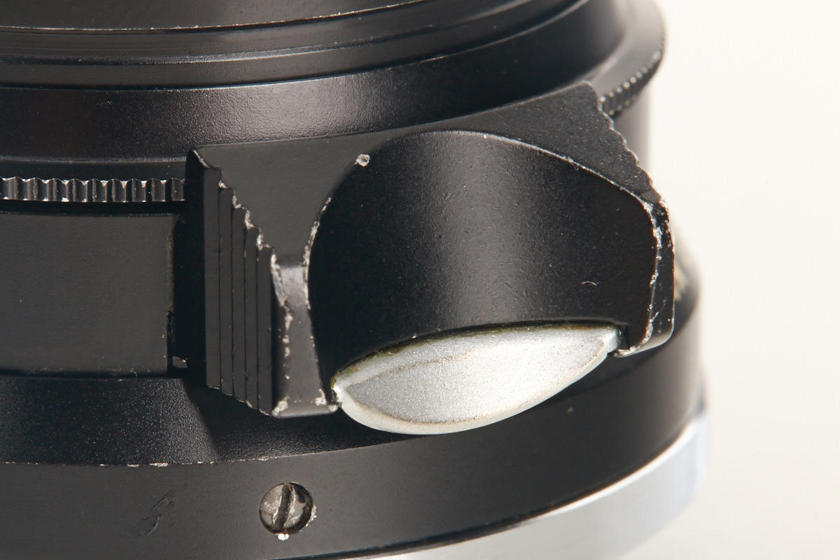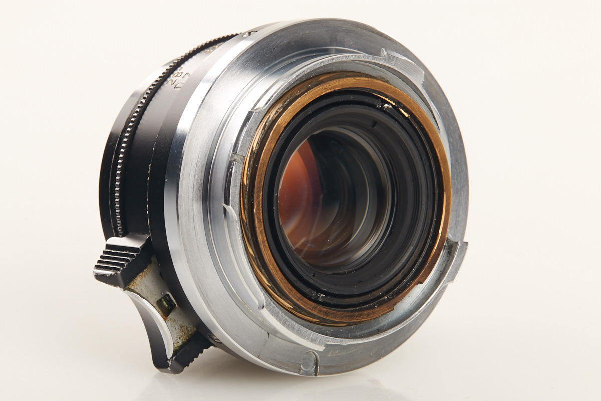 very rare black anodized 8-element Summicron for M2, clean lenses, one small scratch and a few fine cleaning marks on front lens element, smooth focus, chrome infinity lock knob, black front cap, rear cap