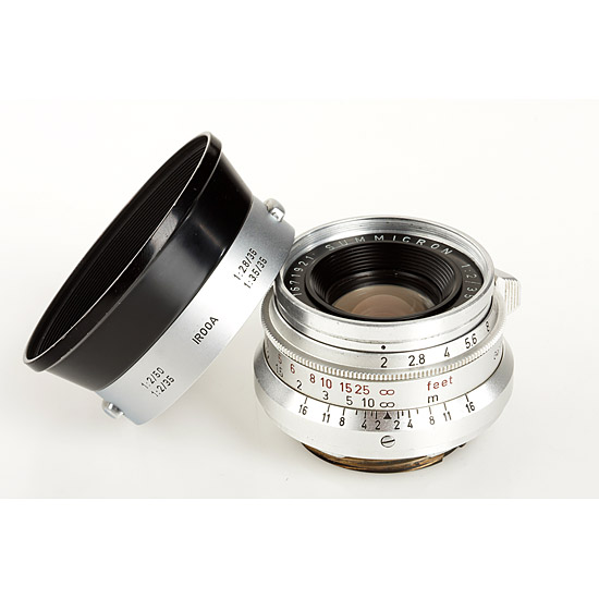 near mint, original Wetzlar screw mount Summicron with clean lenses, IROOA hood, keeper