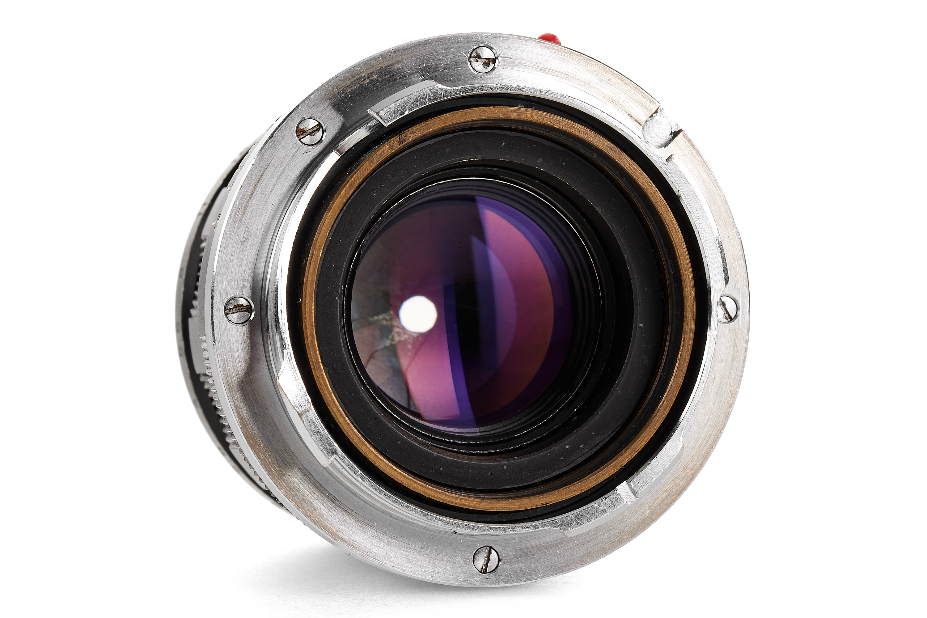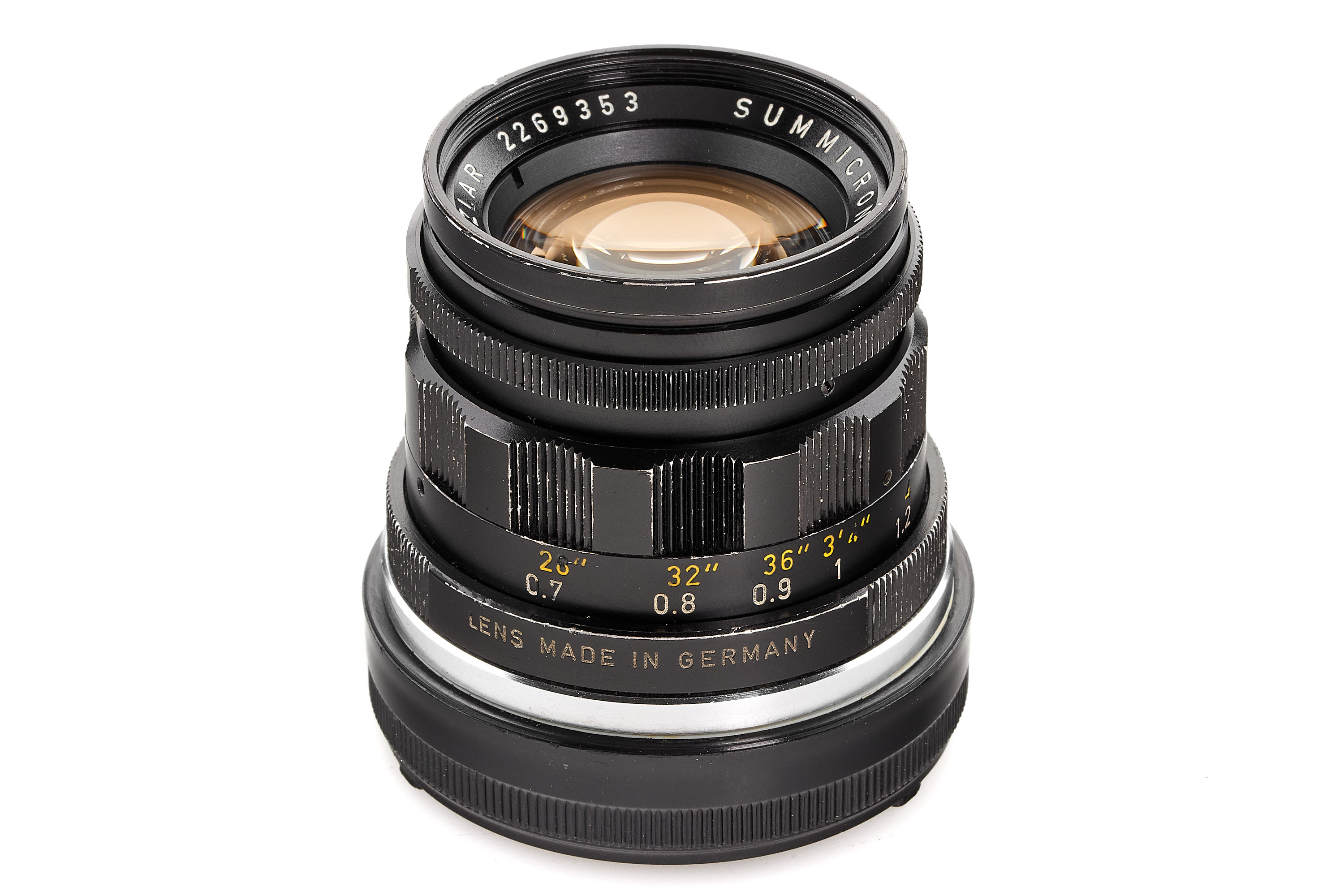 Very rare 6-element lens with coarse focusing knurl, in fine condition, good optics only showing a few light cleaning marks, with both caps and hood 12585.