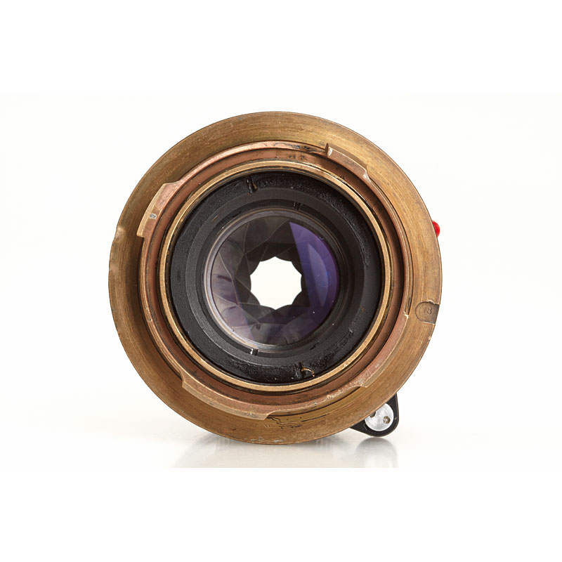 early black painted Summicron with brass lens mount in near mint condition (except a few minor marks on barrel), caps