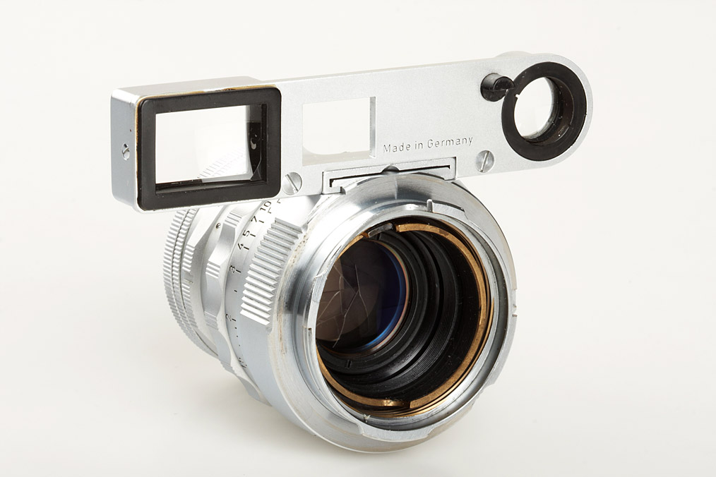 early lens in fine condition, small cleaning marks, complete with viewfinder attachment SDPOO, both caps