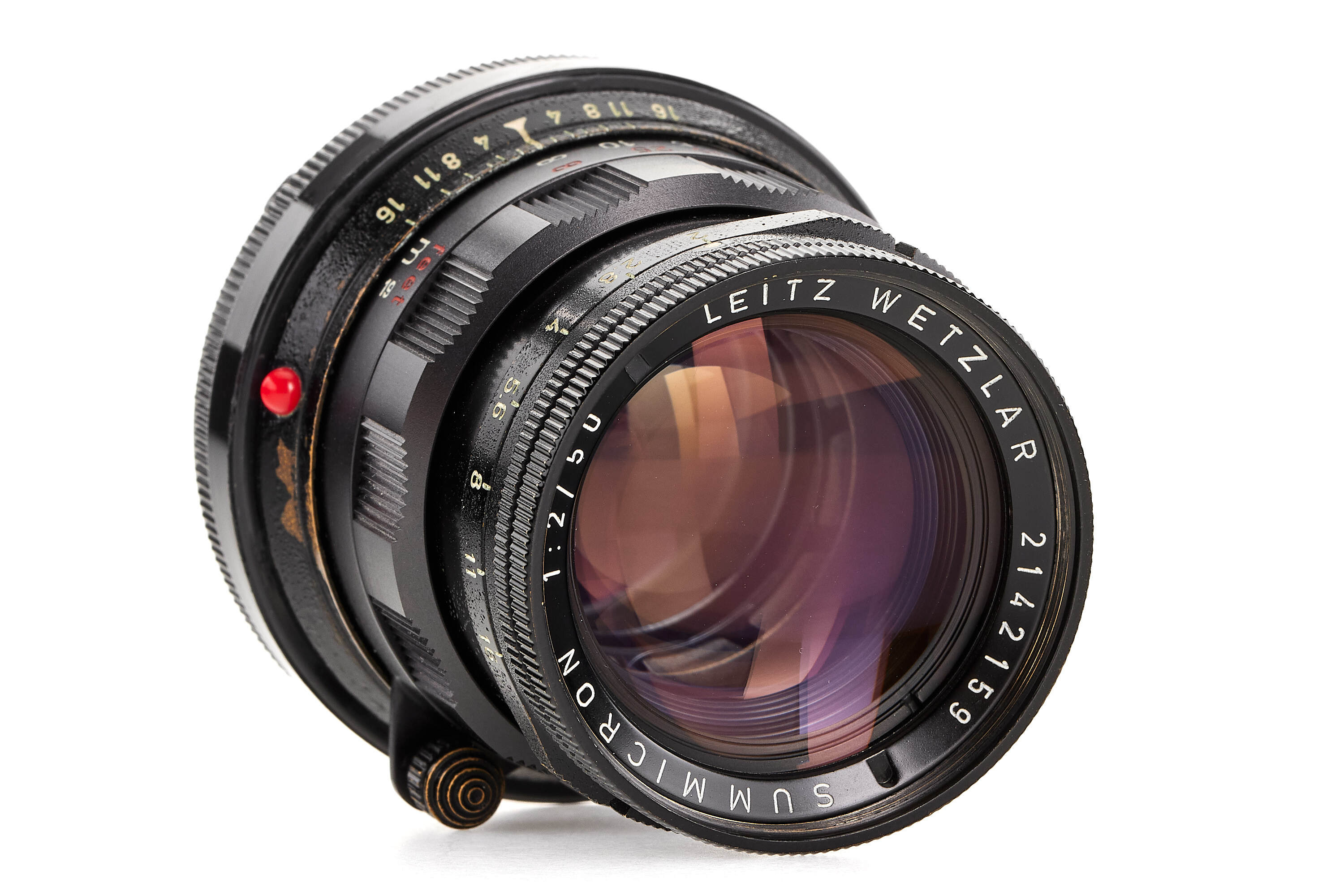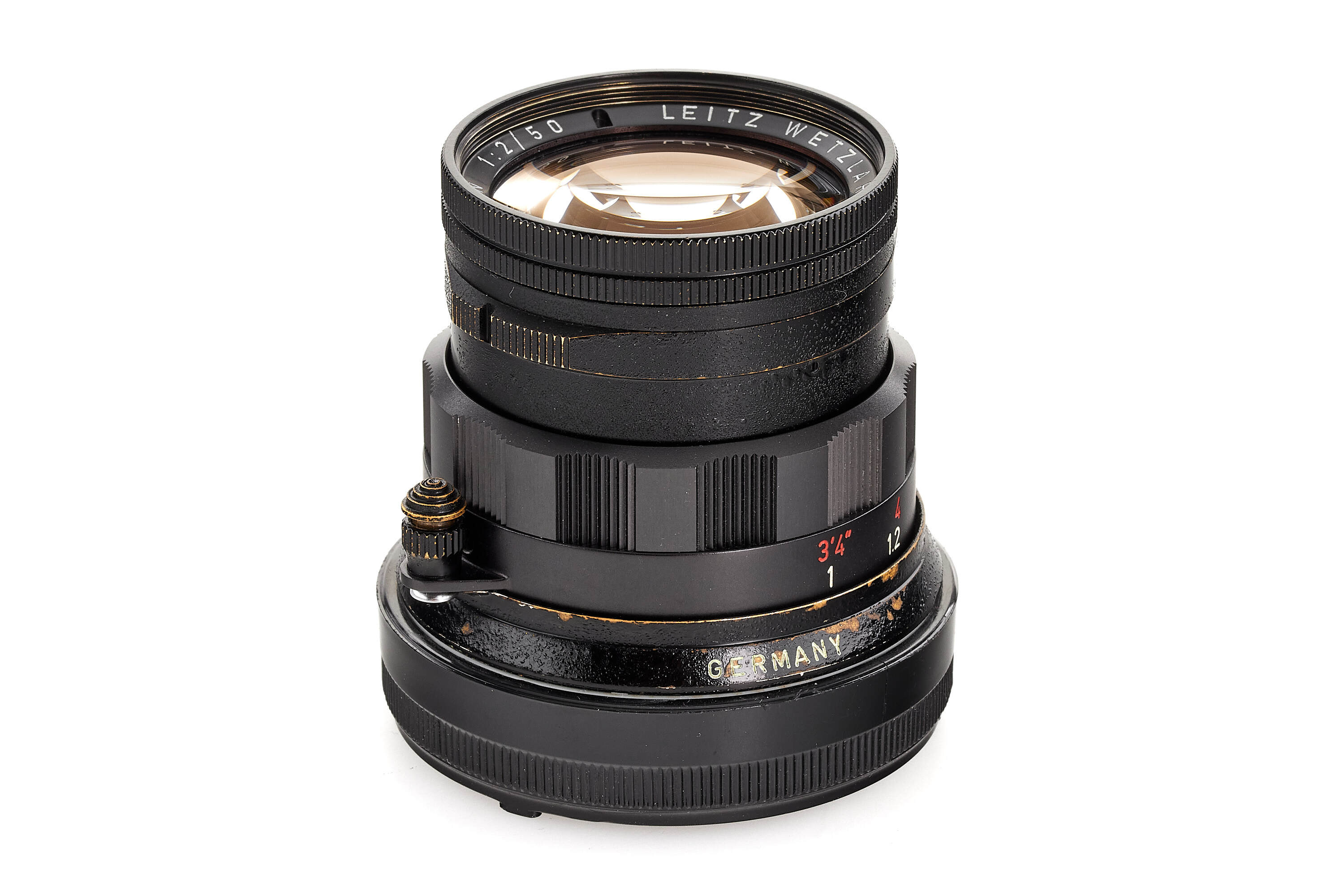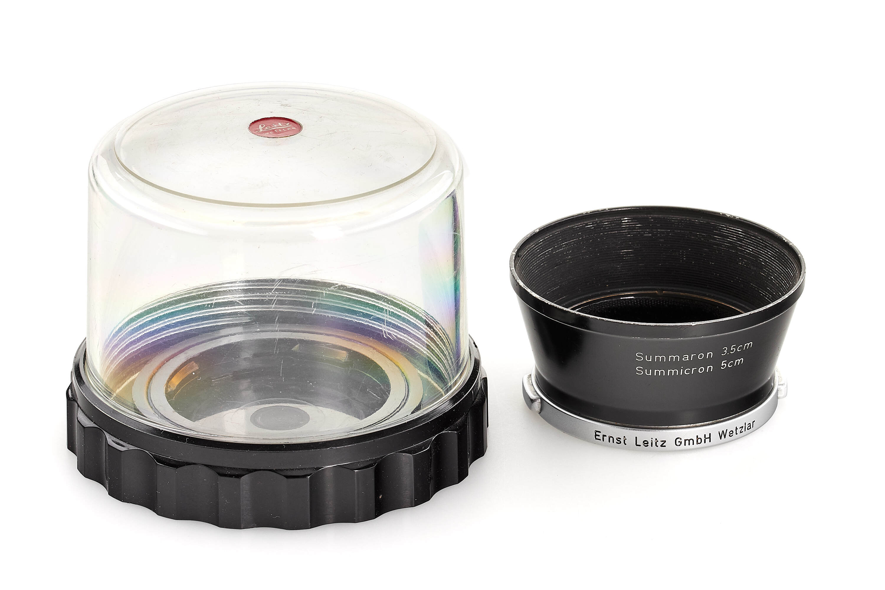 A beautiful black paint Summicron 50mm with amazing minimal patina and small bubbles appearing in the paint, with very good optics, including a matching brass / black paint cap (also showing small bubbles), black paint ITDOO hood, rear cap and plastic keeper.