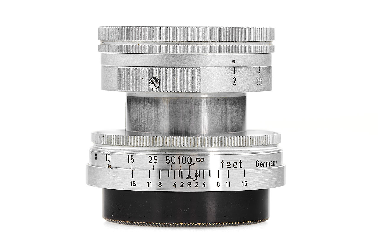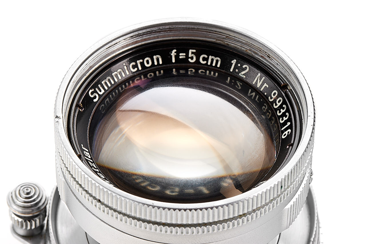 Collapsible Summicron for M39 with feet scale, in very good condition, only two light dents can be seen on the front ring and the barrels (not affecting the operation), lenses showing some haze on the front element, with both caps, delivered to Rio de Janeiro on 05.09.1955.