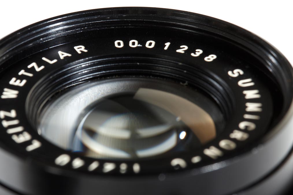 prototype Summicron lens with 000xxx number, partially black painted, rubber hood, caps