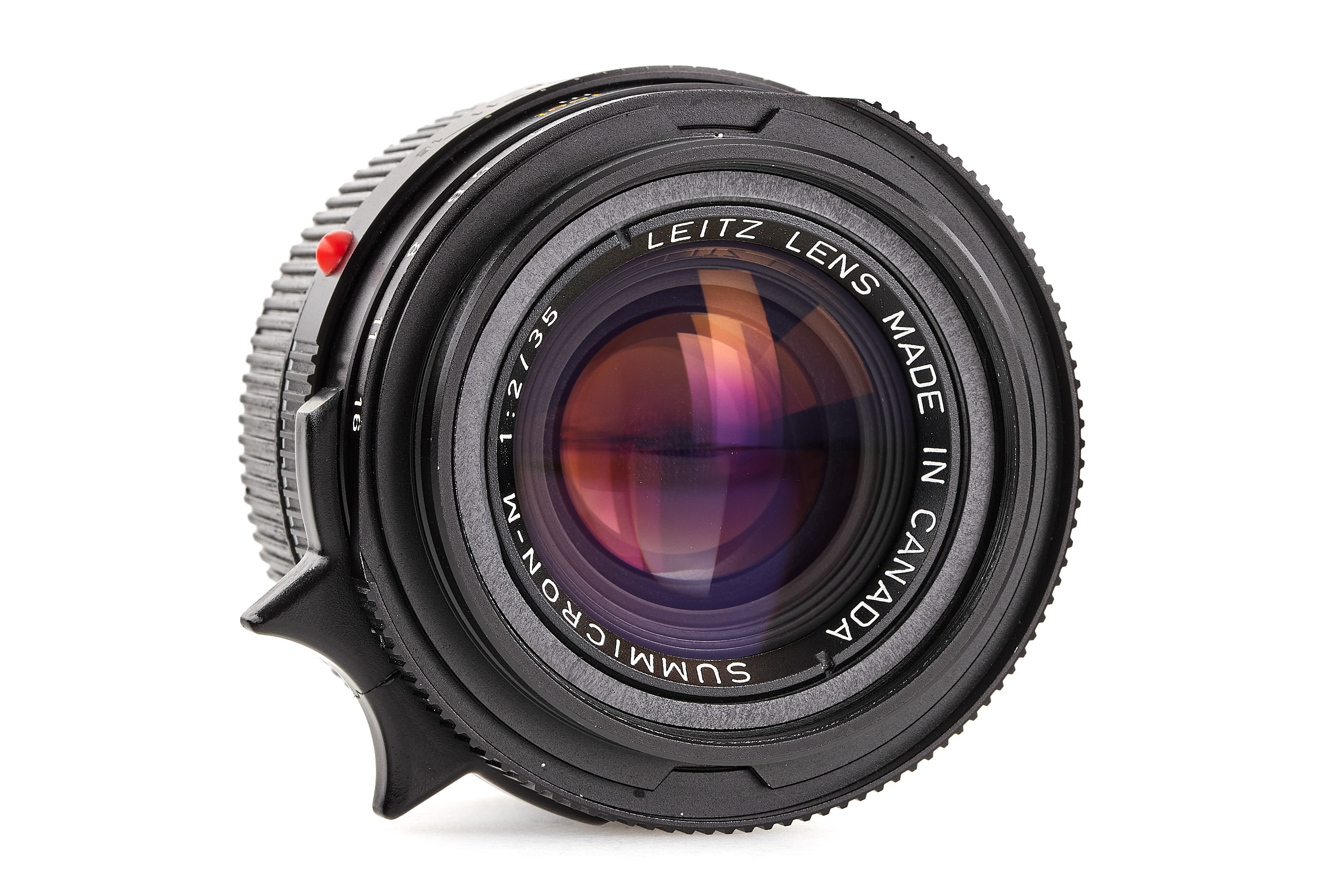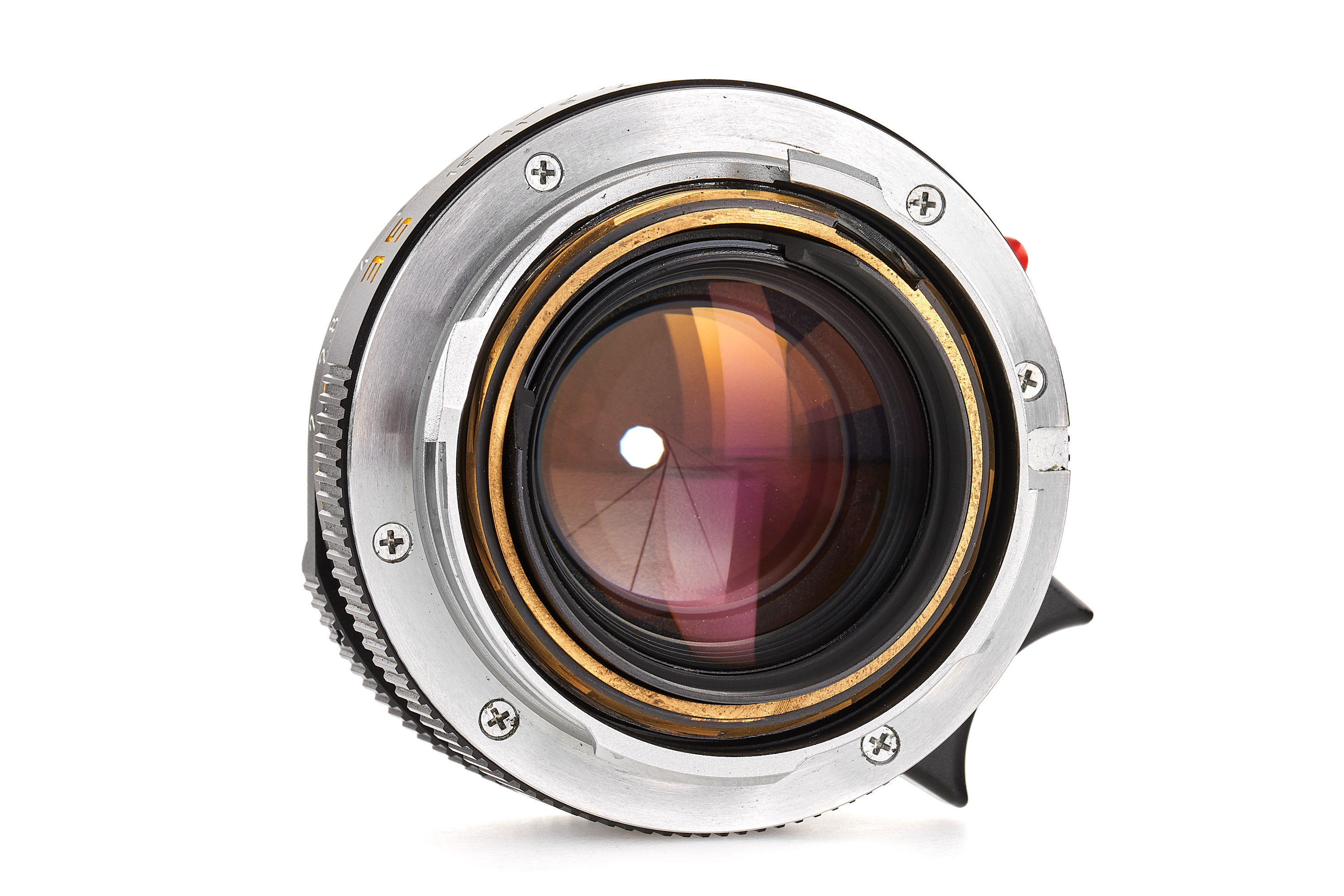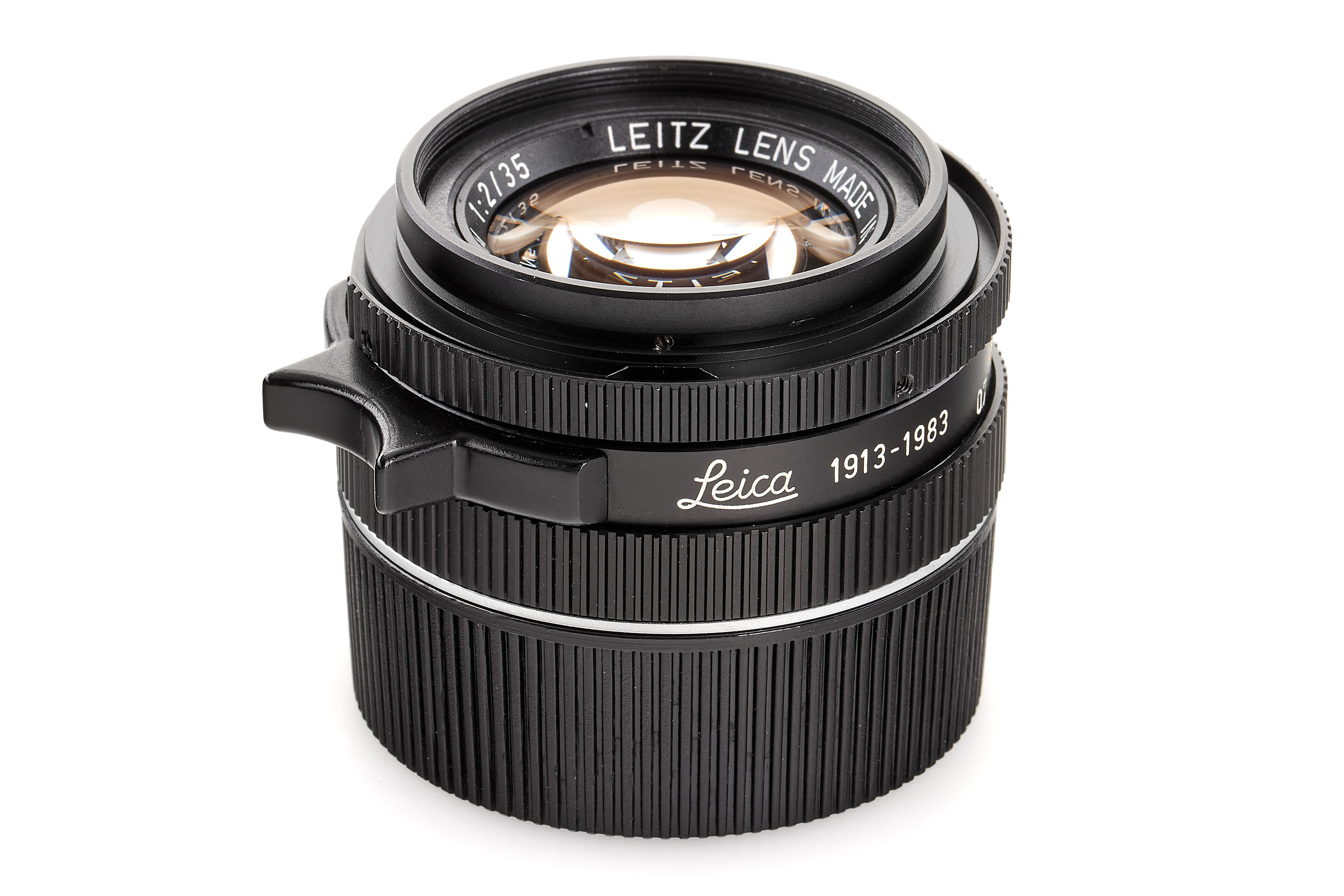 Very nice special edition Summicron issued to commemorate 70 years of Leica cameras 1913-1983, around 800 units produced, sought-after 7-element lens known for its exceptional bokeh, in almost mint condition, clean and clear optics, with 12524 hood and rear cap.