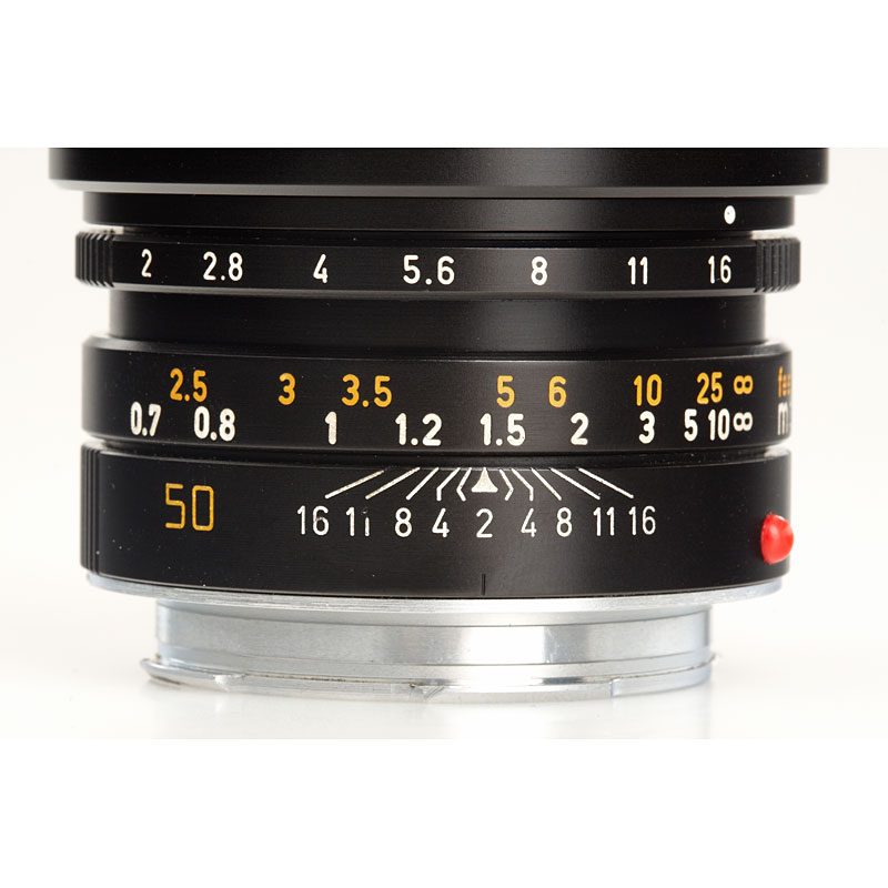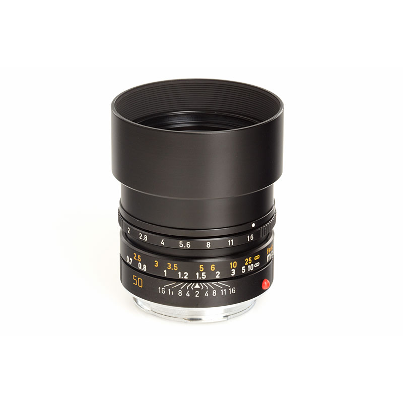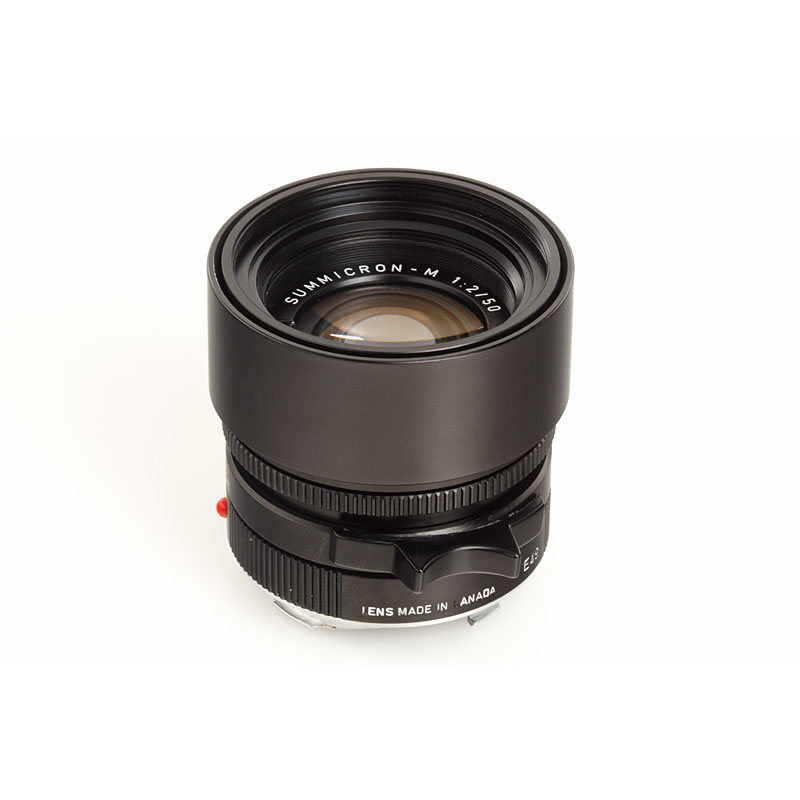 original prototype Summicron (formula '368'), built-in lens hood, E49 filter thread, cap, keeper