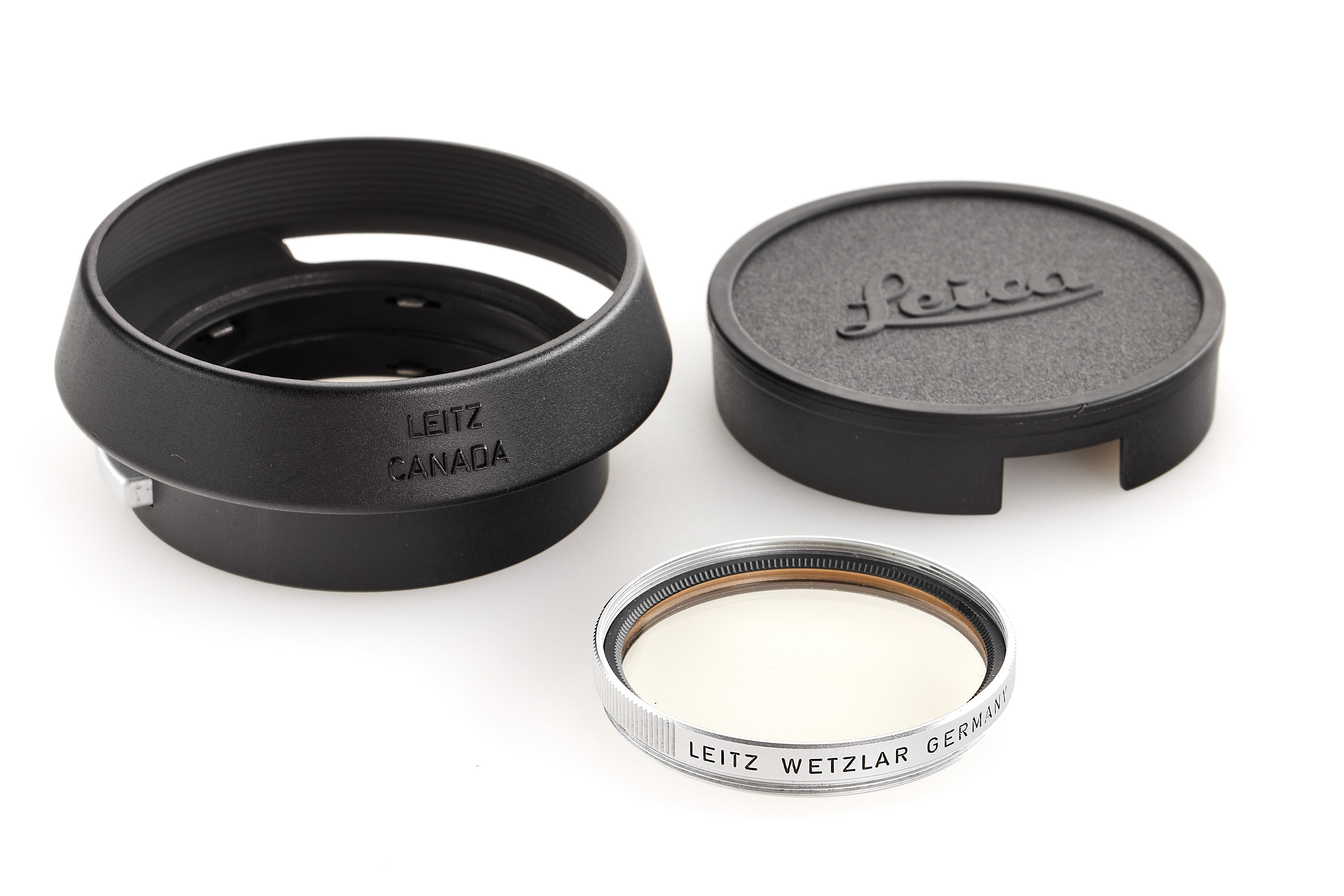 Beautiful rare chrome Summicron 4th version in absolutely mint condition, clean and clear optics, with UVa filter and hood 12538 (with cap).