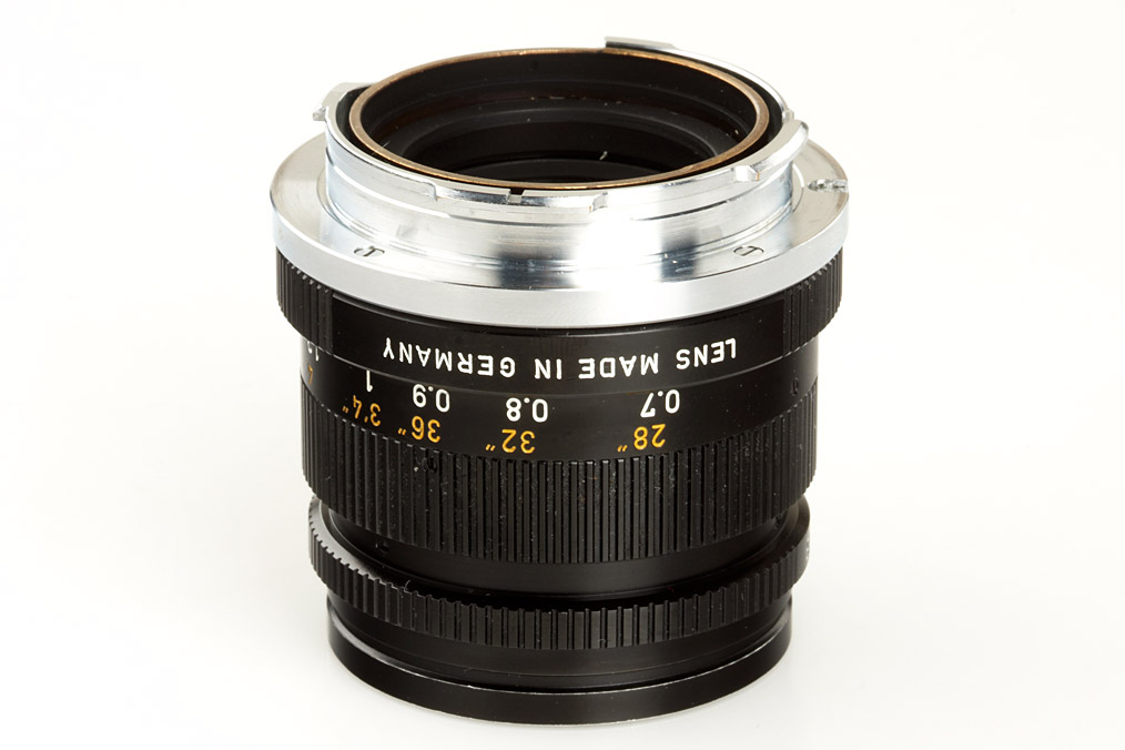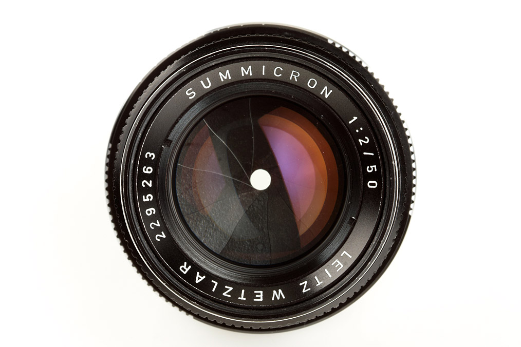 six-element Summicron with fine focusing knurl, clean lenses, hood 12538, caps