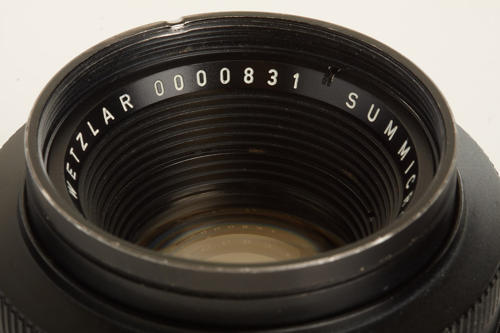 early black Summicron-R prototype with prototype number, converted to 3-cam, filterring, UVa filter, 12564K hood, white rear cap