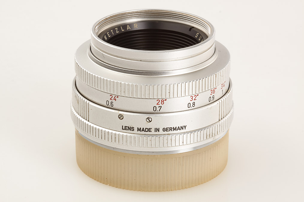 very early lens from a small group without serial number engravings, in very fine condition, metal hood 12564 (both caps)