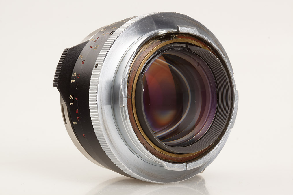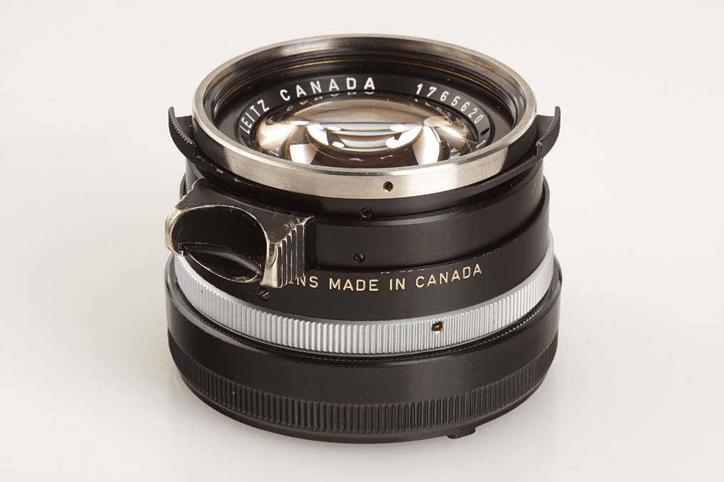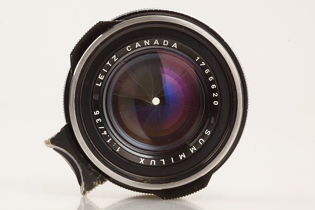 rare black Summilux for M2 with chrome front ring in very fine condition, only the focusing handle and infinity lock button (black painted) with some wear, front element with small cleaning marks, crisp aperture stops, smooth focusing, including OLLUX hood (rear cap)