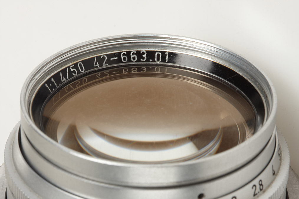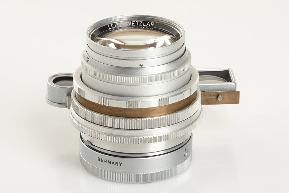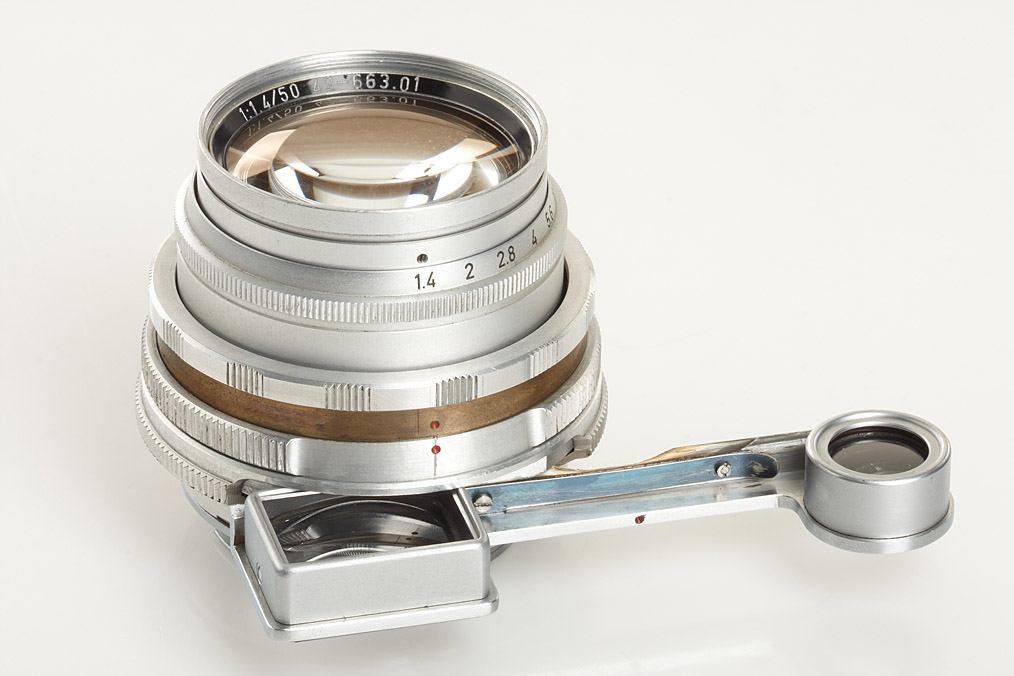 unique prototype Summilux with sliding eyes for close focus, front ring engraved: LEITZ WETZLAR 1:1,4/50 42-663.01, rare chrome rear cap