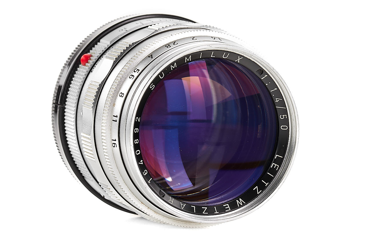 Beautiful, extremely early chrome Summilux 50mm for M, from the very first batch, production started with no.1640601, in near-mint condition, good optics, with both caps.