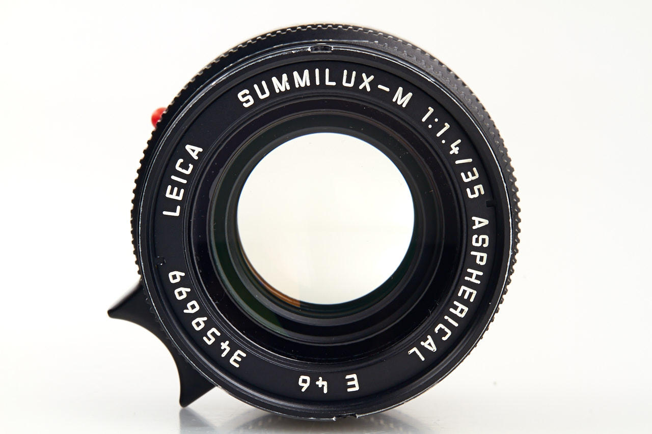 first type Aspherical Summilux in excellent condition, perfectly clean lenses, only few small marks on barrel, with hood, keeper, caps - this is one of the first 1.4/35mm Aspherical lenses still produced in Wetzlar, production started with number 3459671