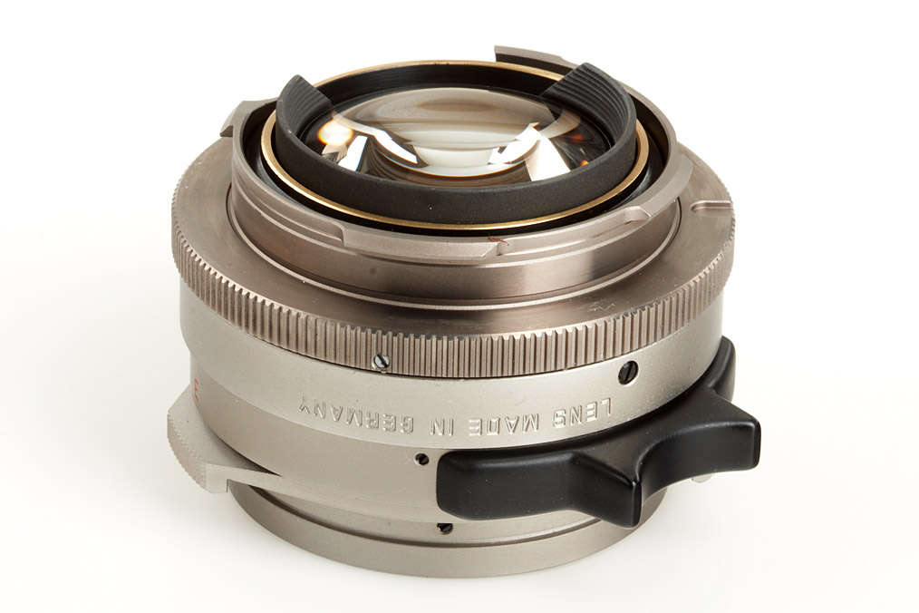 first type Summilux in titanium finish, like new with hood 12504, caps, case, papers and maker's box