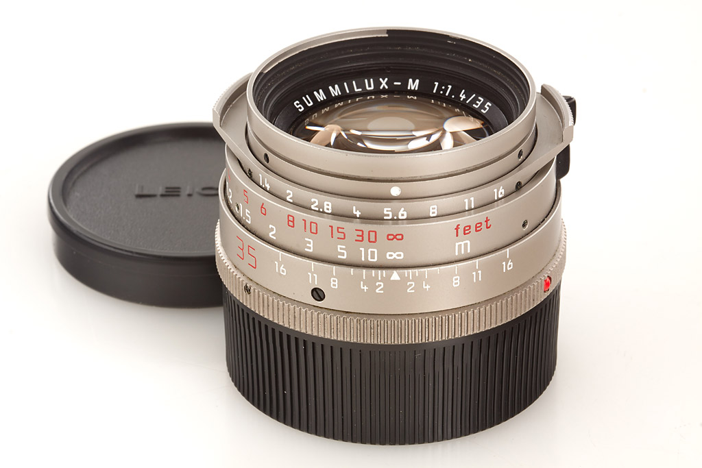 first type Summilux in titanium finish, almost mint with hood 12504 (caps, keeper)