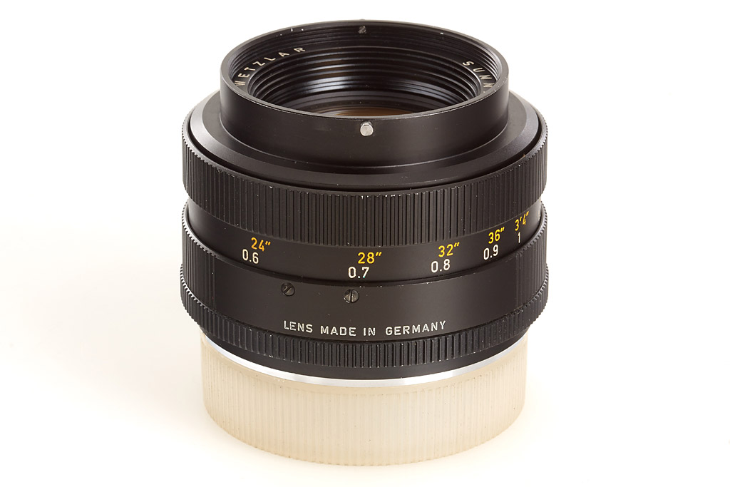 demonstration lens without serial number engraving on front ring, in near mint condition with original hood and white rear cap - provenance: Leica-Technik