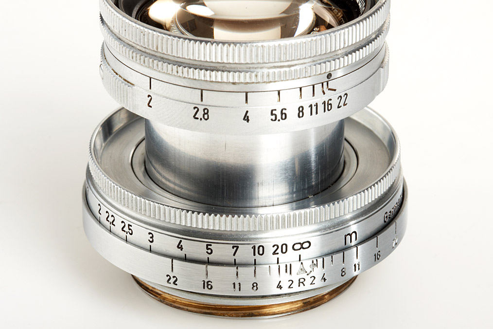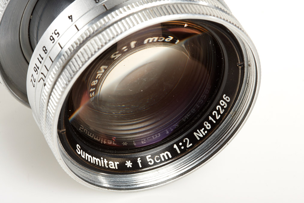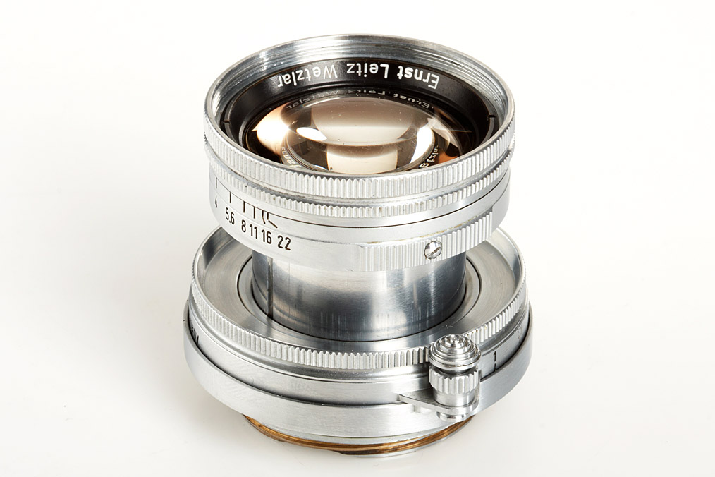 very rare prototype of the later Summicron with thorium-oxide element in correct mount (diaphragm to 22), a small series of these lenses were produced for testing in 1950, 3 years before the Summicron came on the market, the lens is in good, original condition with some small marks, keeper