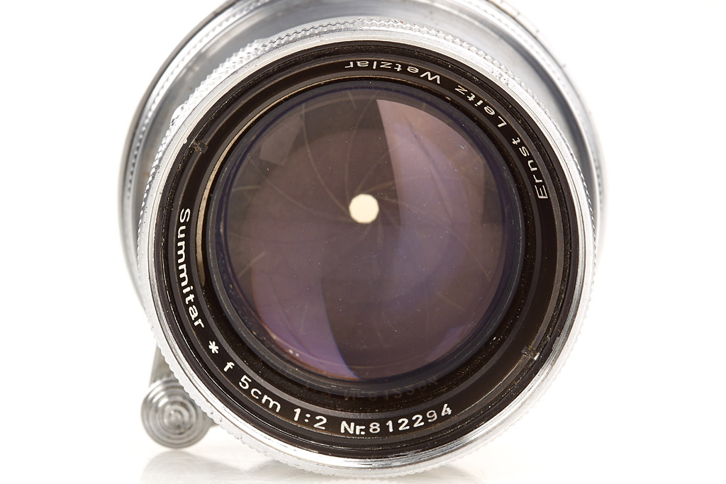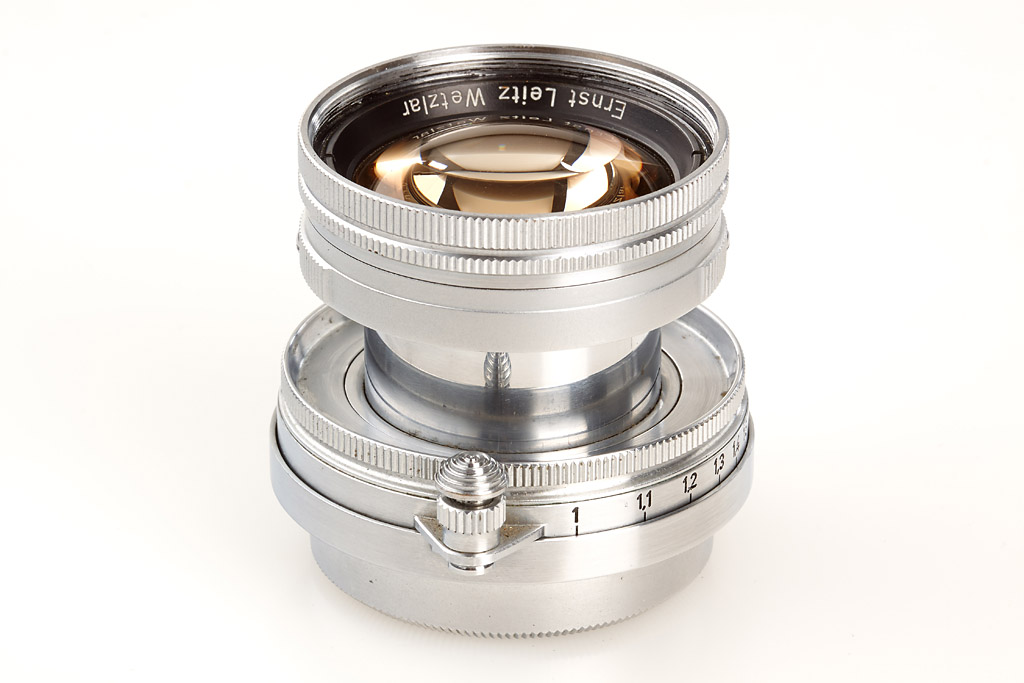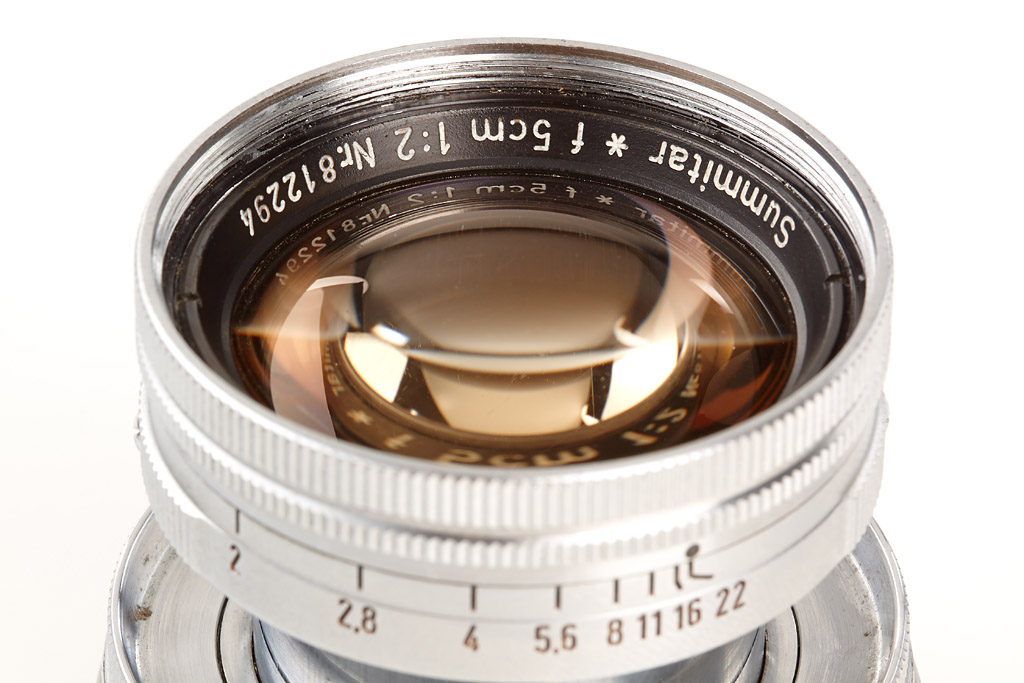 very rare prototype of the later Summicron with thorium-oxide element in correct mount (diaphragm to 22), a small series of these lenses were produced for testing in 1950, 3 years before the Summicron came on the market, the lens is in very fine, original condition with clean optics (few cleaning marks)