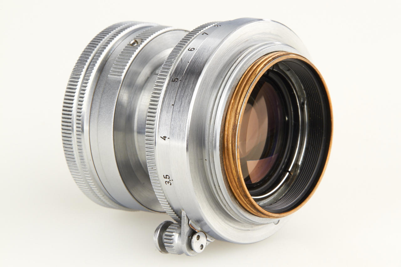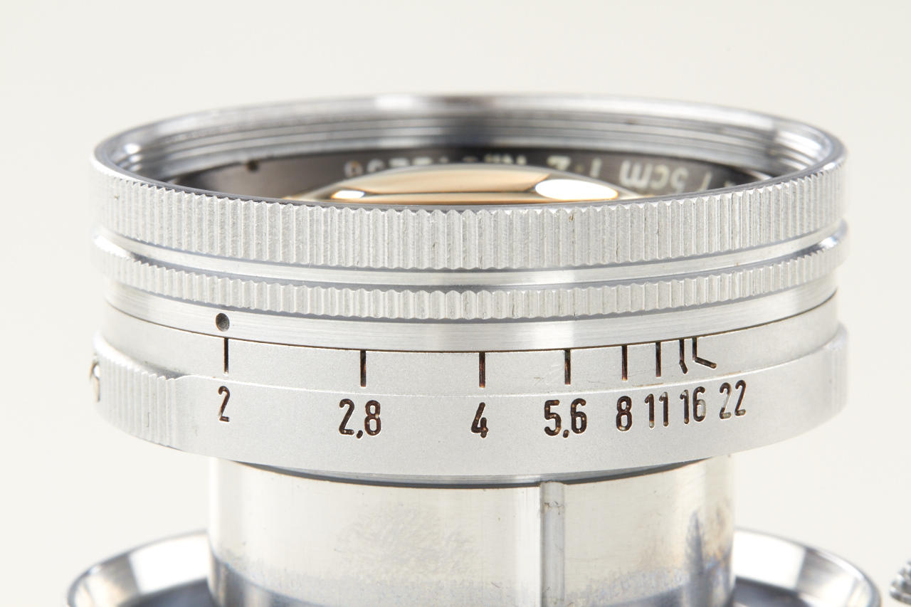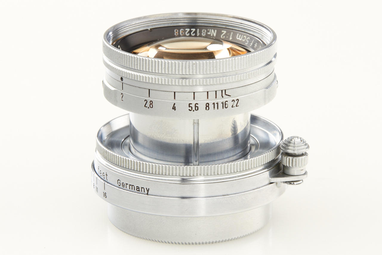 very rare prototype of the later Summicron with thorium-oxide element in correct mount (diaphragm to 22), a small series of these lenses were produced for testing purposes in 1950, 3 years before the Summicron came on the market, the lens is in very fine, original condition with clear optics - this lens is the consecutive number of two lenses (nos. 812296 & 812297) sold in our May auction in Wetzlar, according to the previous owner it was directly acquired from Mr. Keller (former employee at Leitz scientific division)