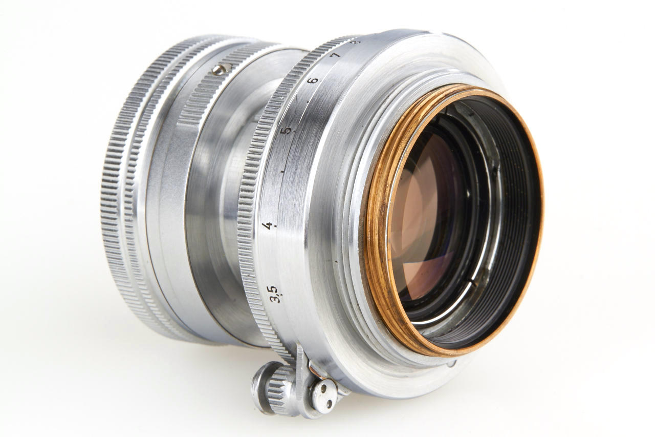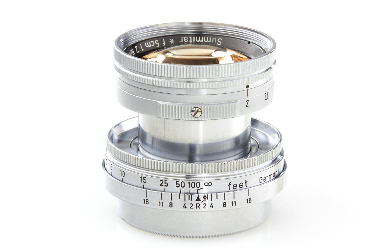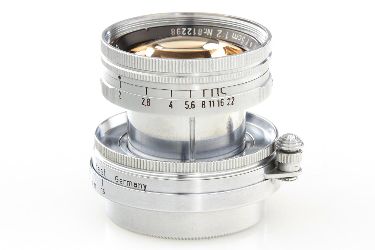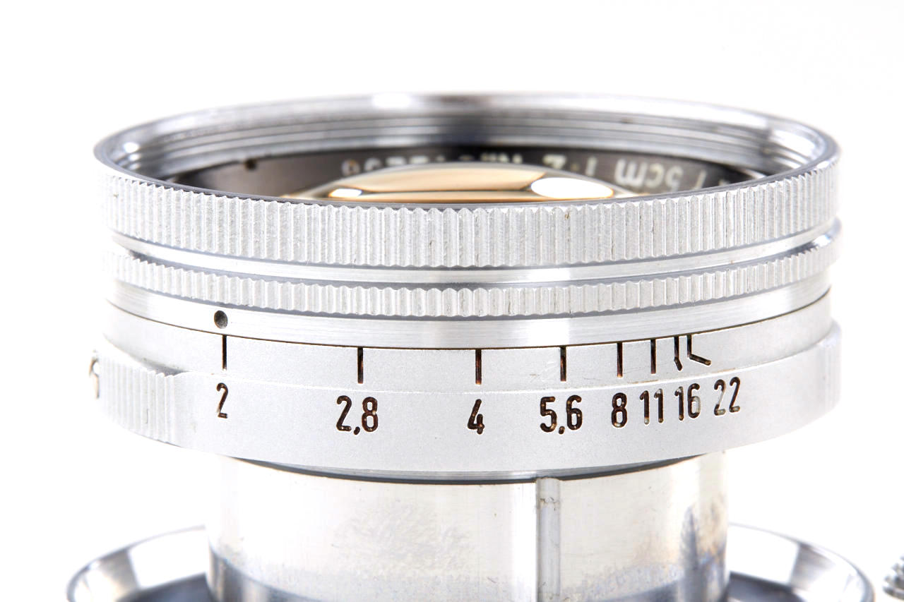 very rare prototype of the later Summicron with thorium-oxide element in correct mount (diaphragm to 22), a small series of these lenses were produced for testing purposes in 1950 three years before the Summicron came on the market, the lens is in very fine, original condition with clear optics, according to the previous owner it was directly acquired from Mr. Keller (former employee at Leitz scientific division)
