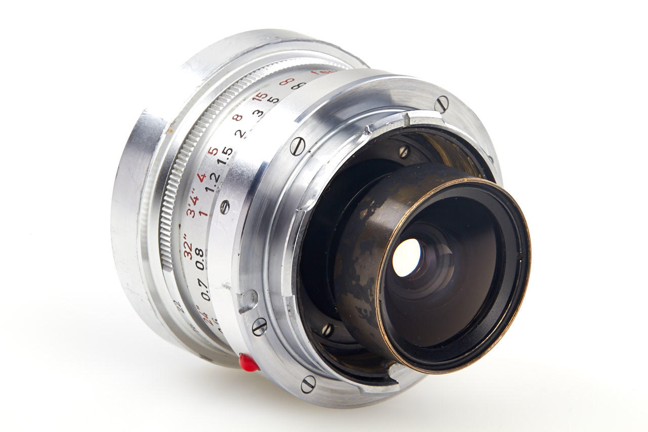 early lens in good condition, clean optics, with 12501M hood and rear cap