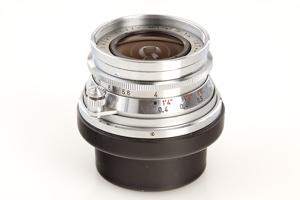 in very fine condition, UV filter, caps, mint IWKOO hood in maker's box, matching black 21mm finder in maker's box