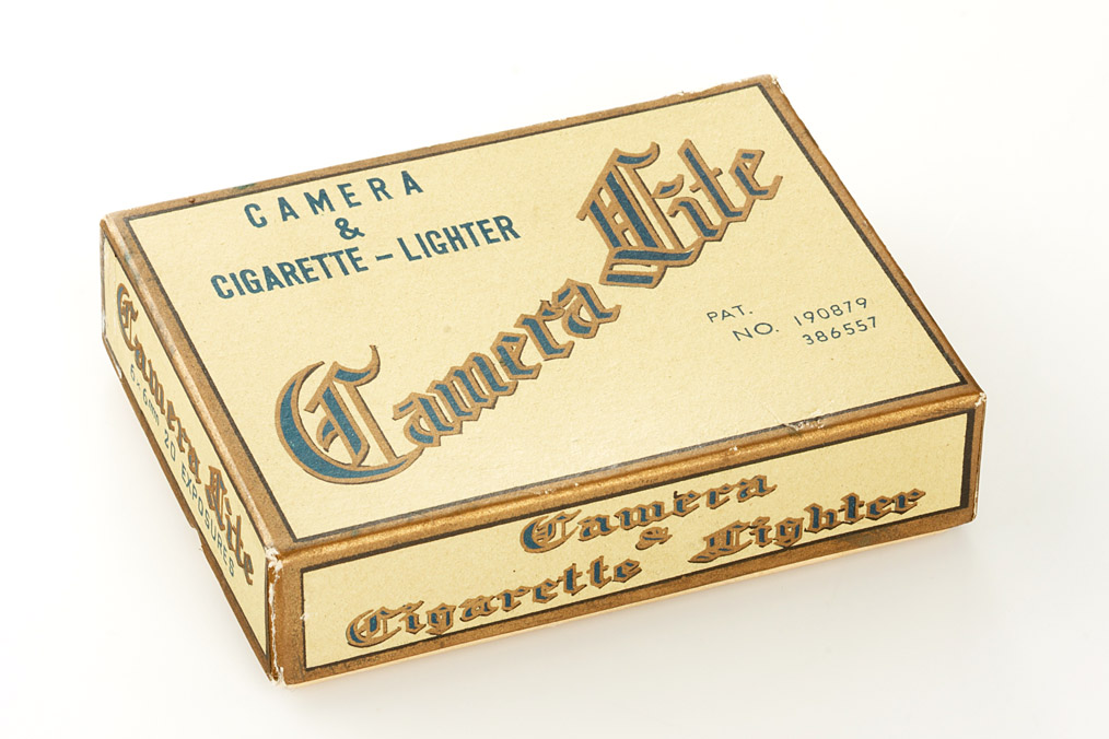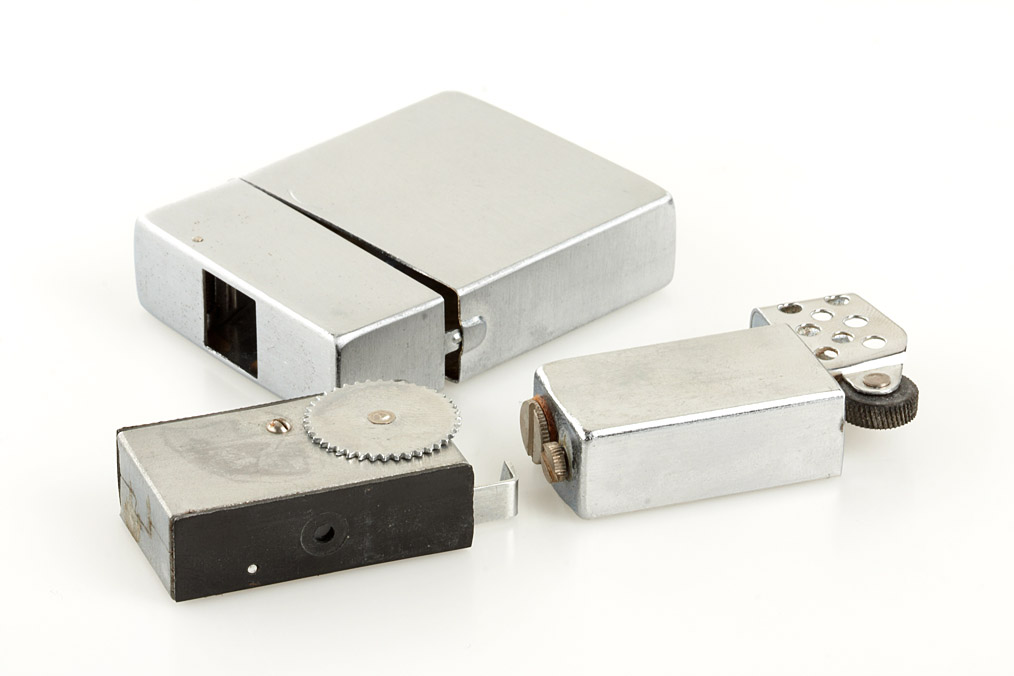 6x6mm exposures on 8mm perforated film, first version, simple fixed focus lens in a single speed shutter with combined fluid lighter, in maker's printed cardboard box with plastic case, orig. printed instructions, a photo and 3 unused Minori films